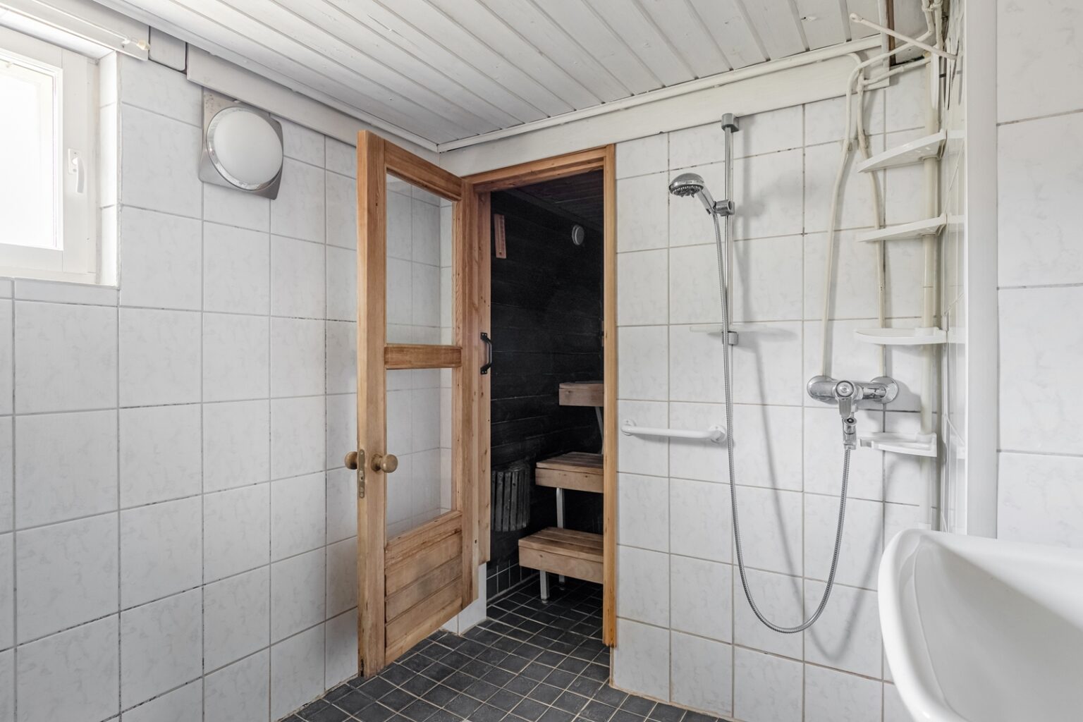 Sisääntulokerroksessa on olohuone, tilava keittiö ja takkahuone. Erillinen wc, sekä sauna/pesuhuonetilat.