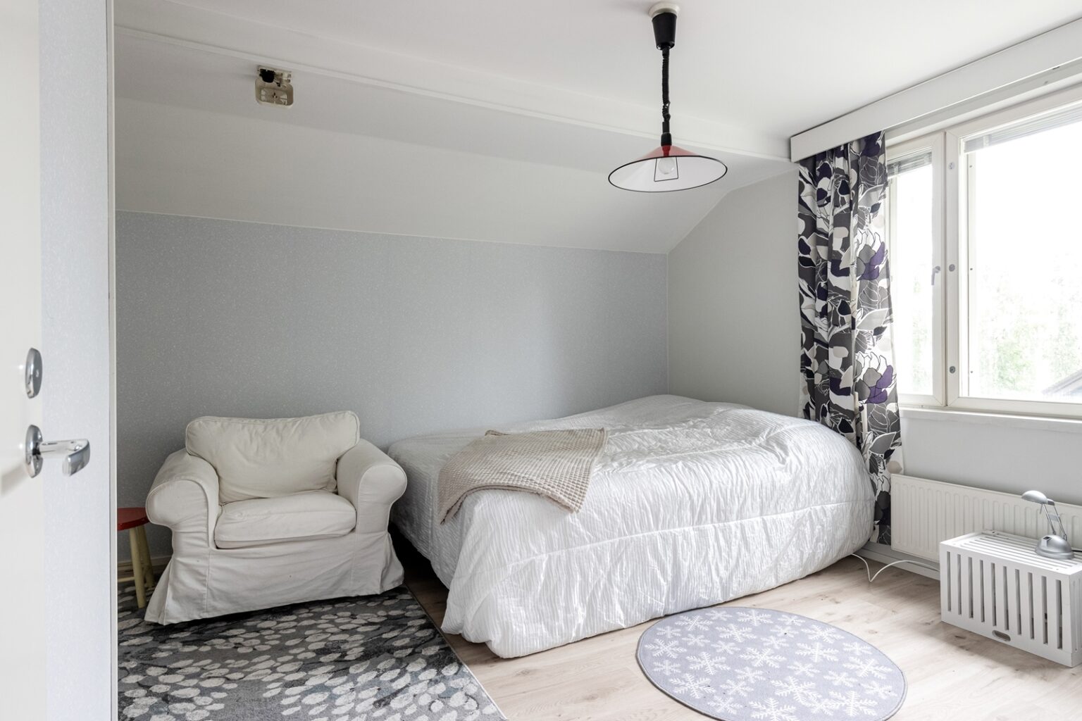 Yläkerrassa on kolme makuuhuonetta. Kylpyhuone/wc-tila.