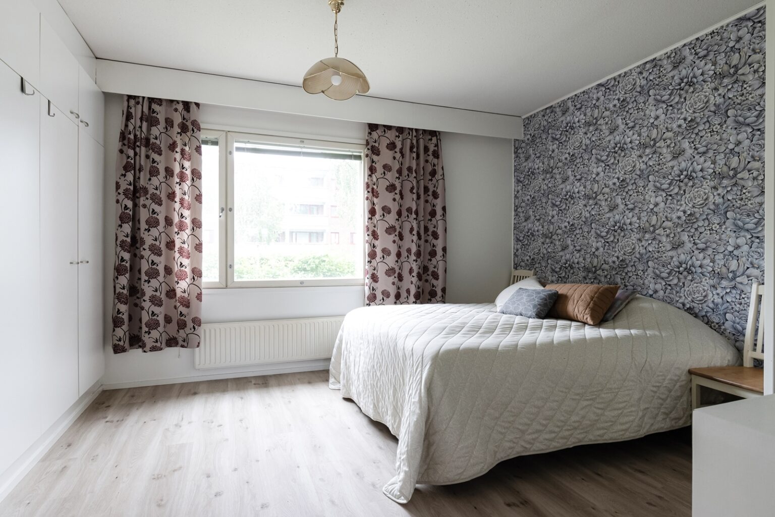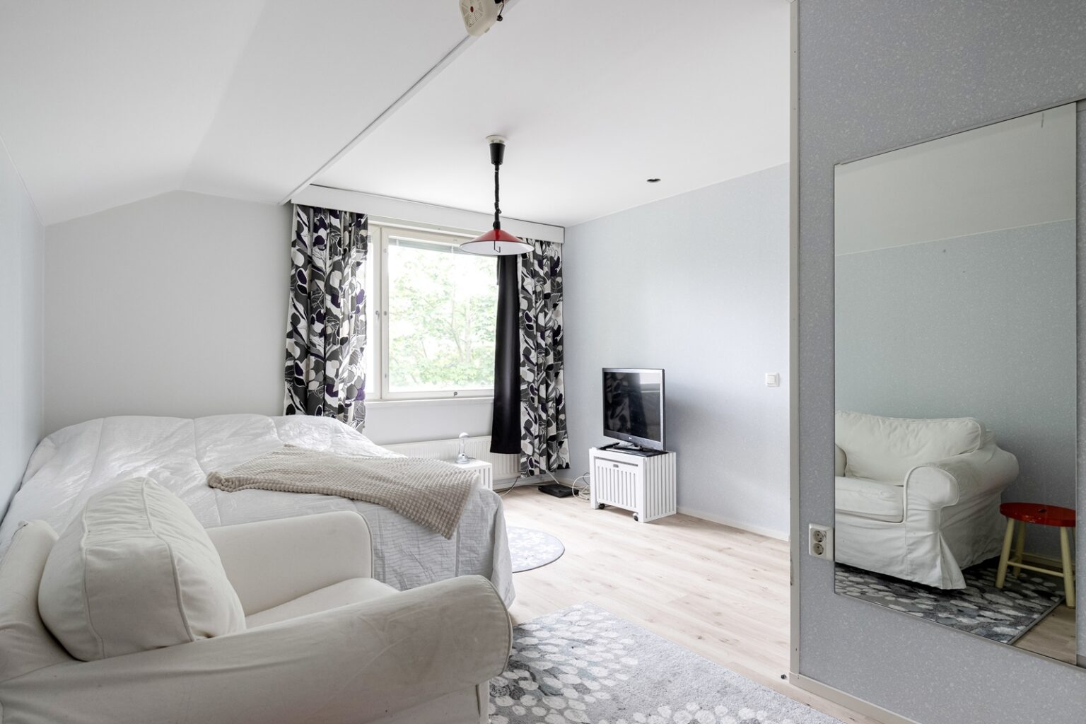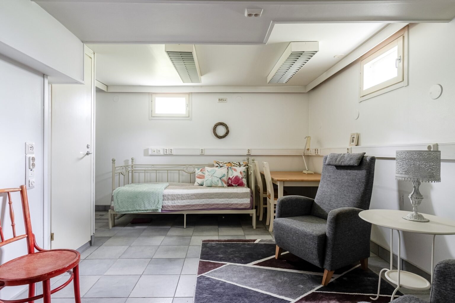 Makuuhuone, joka soveltuu niin vierashuoneeksi kuin työhuoneeksi.