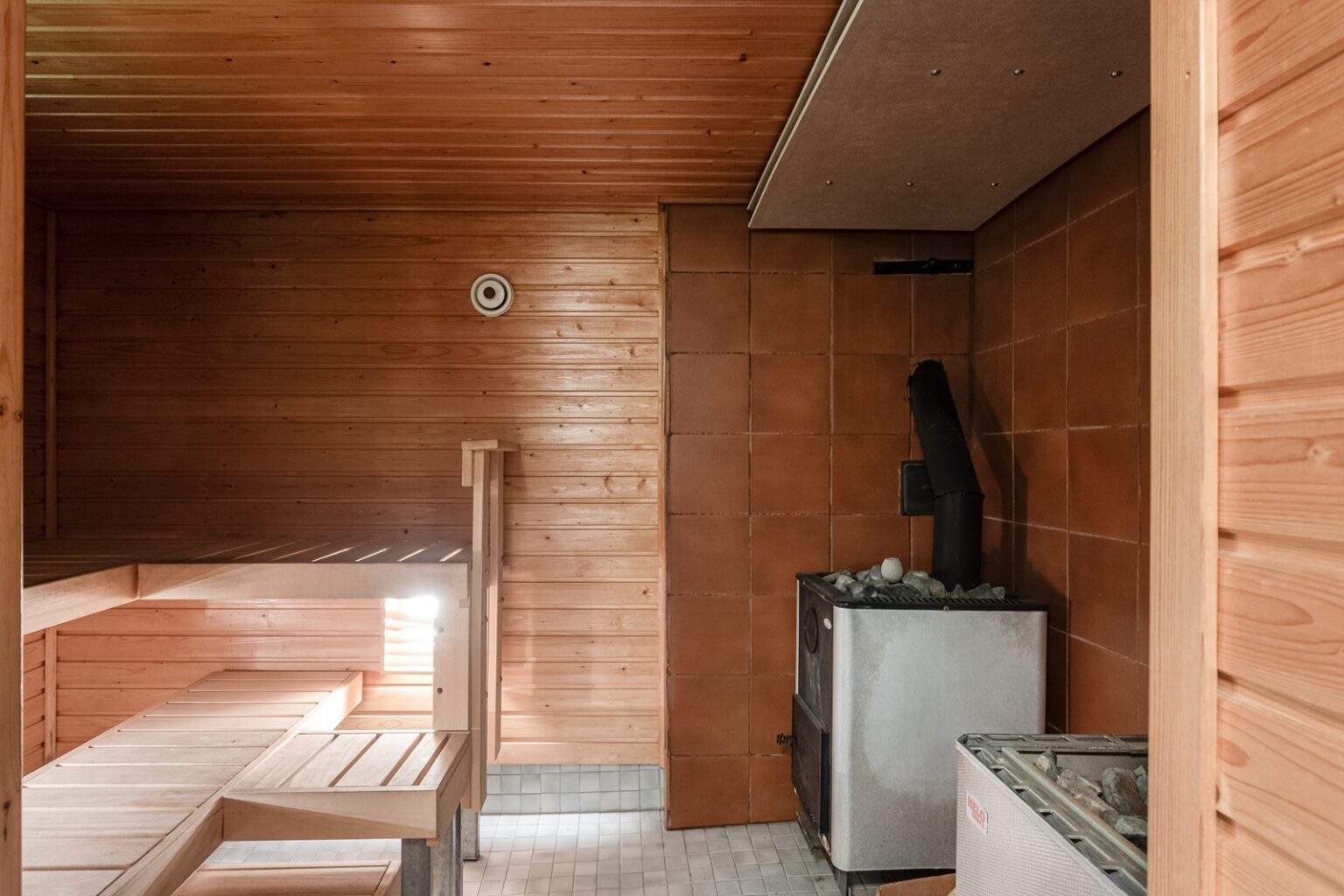 Pohjakerroksessa on hyvä kodinhoitohuonetila. Varasto ja harrastetiloja sekä sauna/pesuhuonetilat.