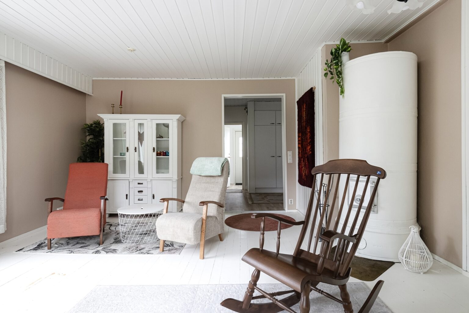 Lämmönlähteenä on sähkö (patterit ja lattialämmitys), keittiössä on iso varaava leivinuuni ja olohuoneessa on pönttöuuni. Lisäksi talossa on ilmalämpöpumppu.