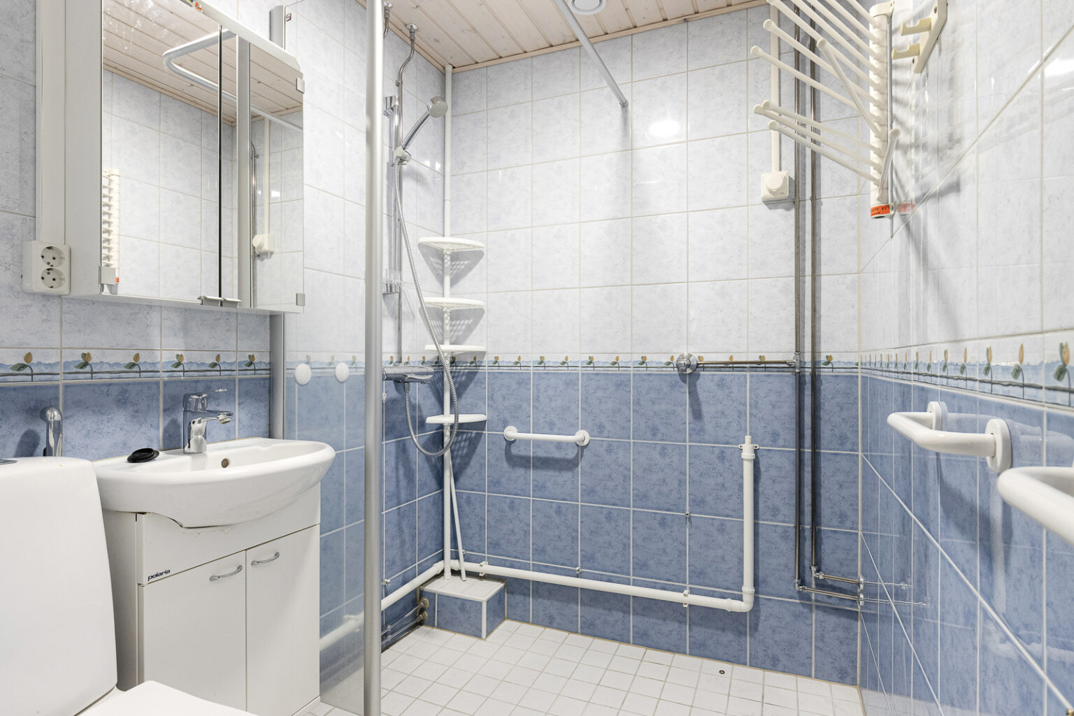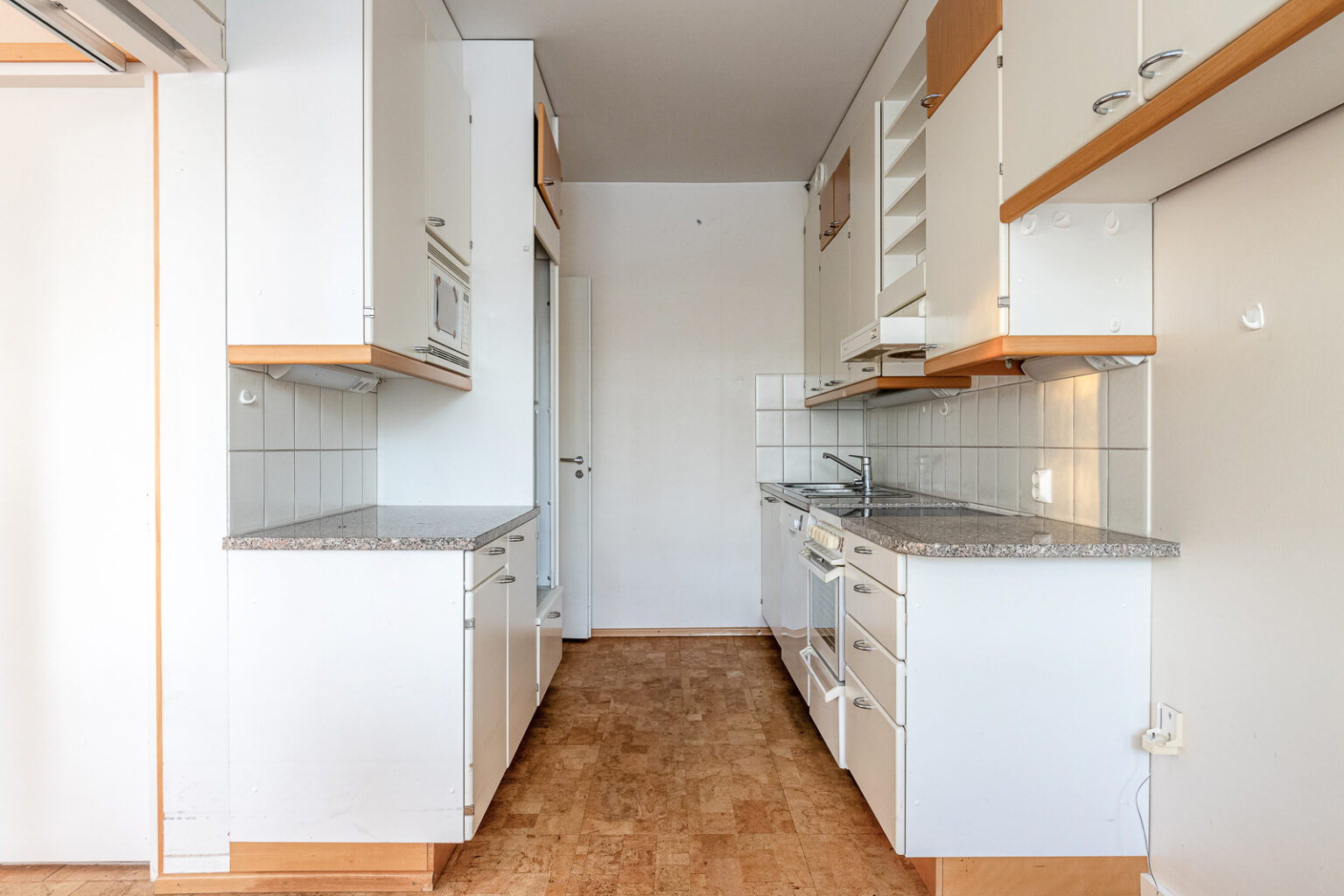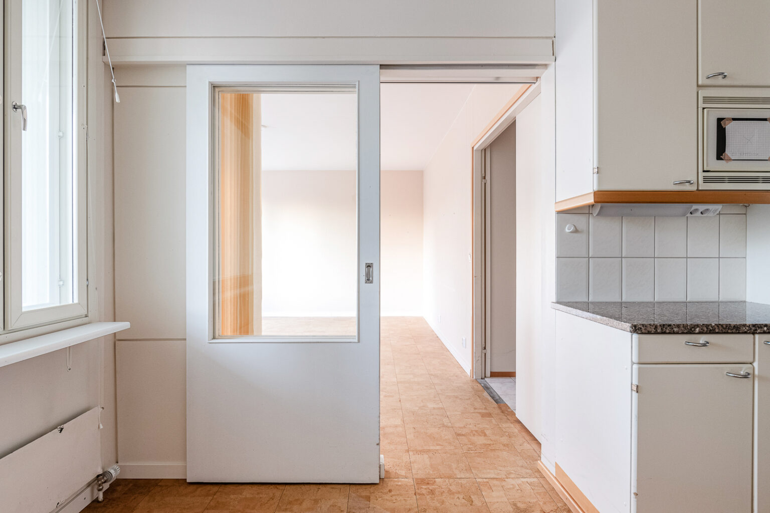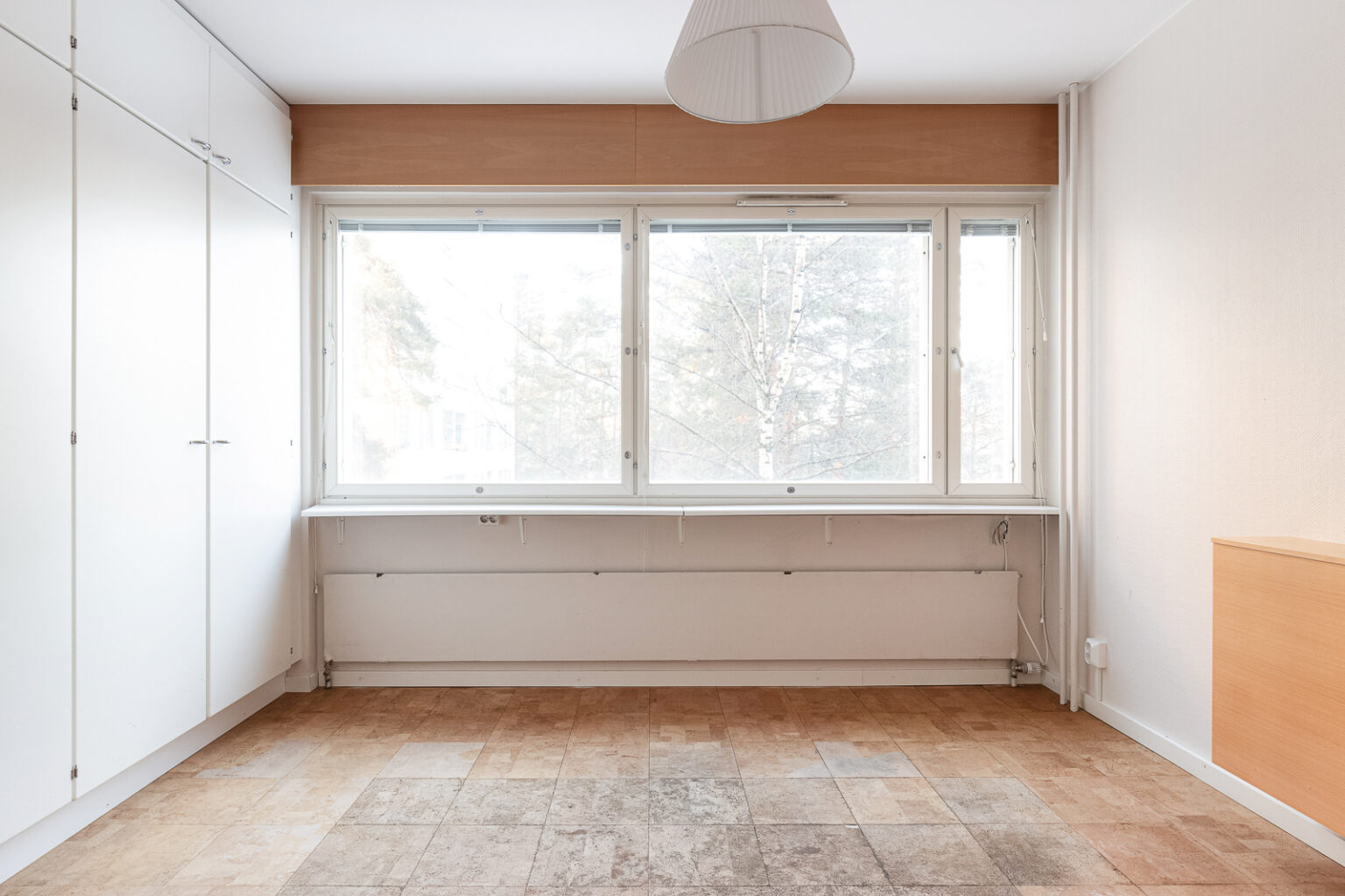 Keittiö ja kylpyhuone on remontoitu aiemmin, ja kokonaisuus on siistikuntoinen ja hyvin toimiva. Olohuoneen isot ikkunat tekevät tilasta poikkeuksellisen valoisan. Makuuhuoneessa on reilusti säilytystilaa kaapistollisen seinän ansiosta.