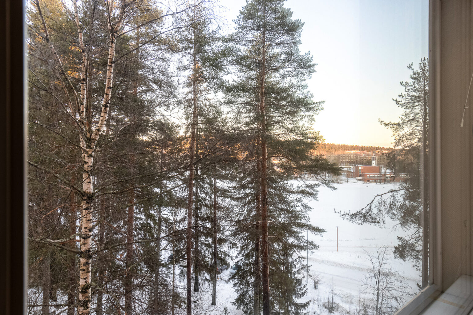 *5. kerroksen kulmahuoneisto rauhallinen sijainti ja runsaasti luonnonvaloa.