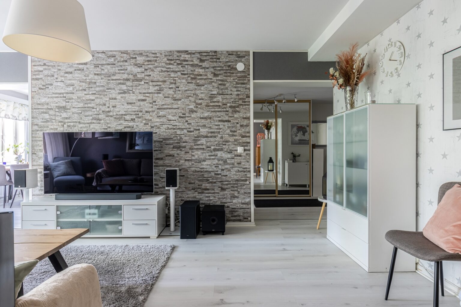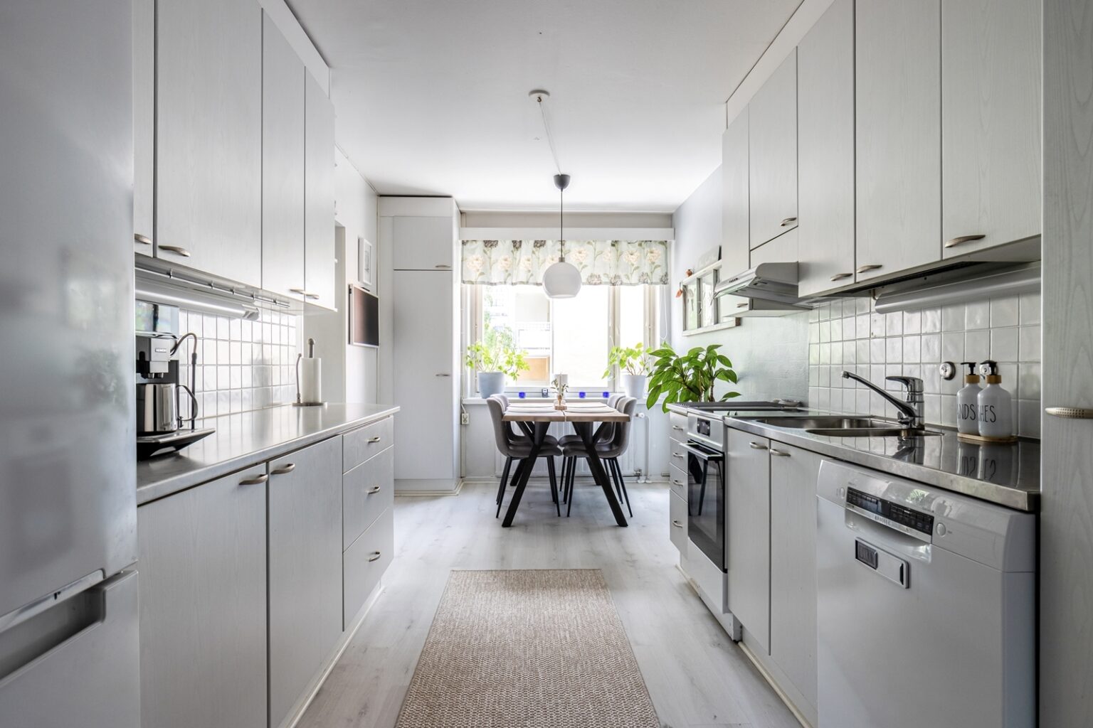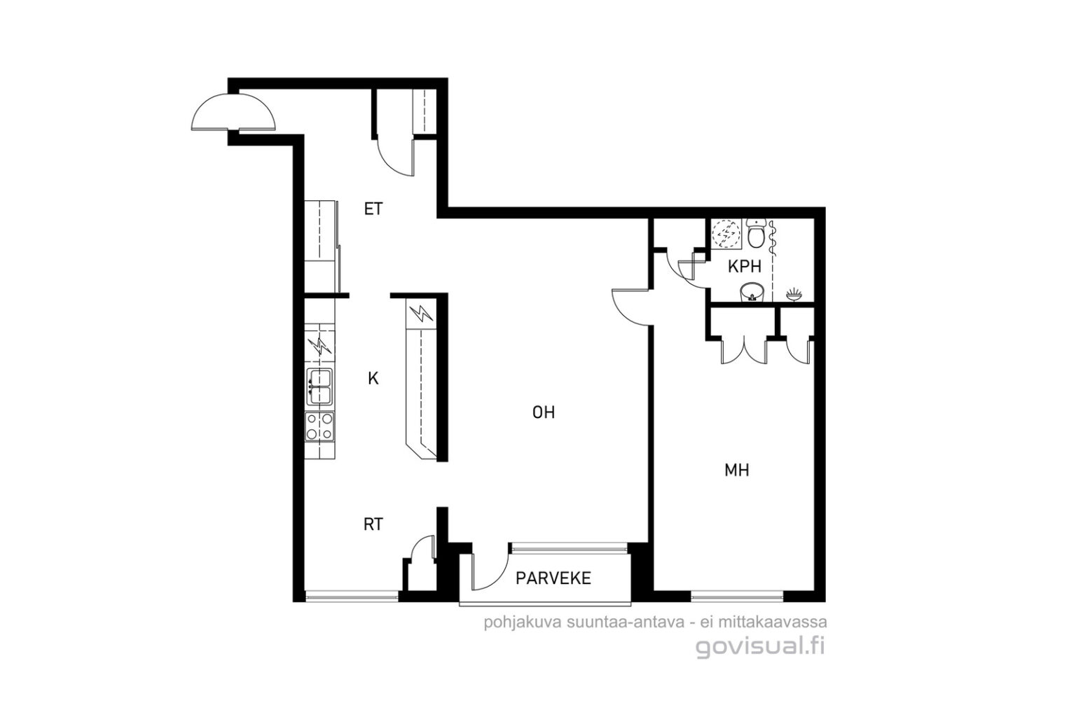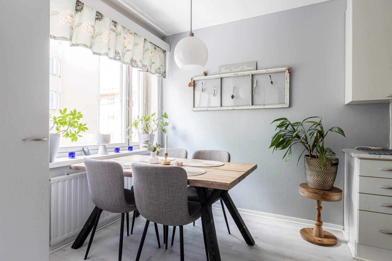 Kolmannen kerroksen asunnossa on hyvin tilaa, sillä neliöitä on kaksioksi runsaasti (68,5 m2). Kiva lasitettu parveke ja kesällä viilennyksen avuksi on ilmalämpöpumppu.