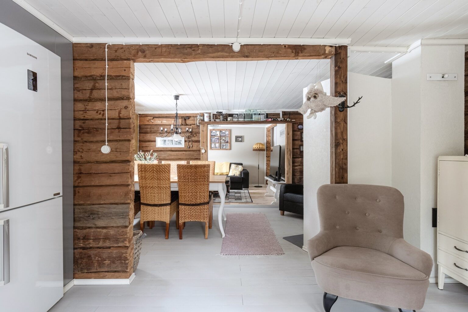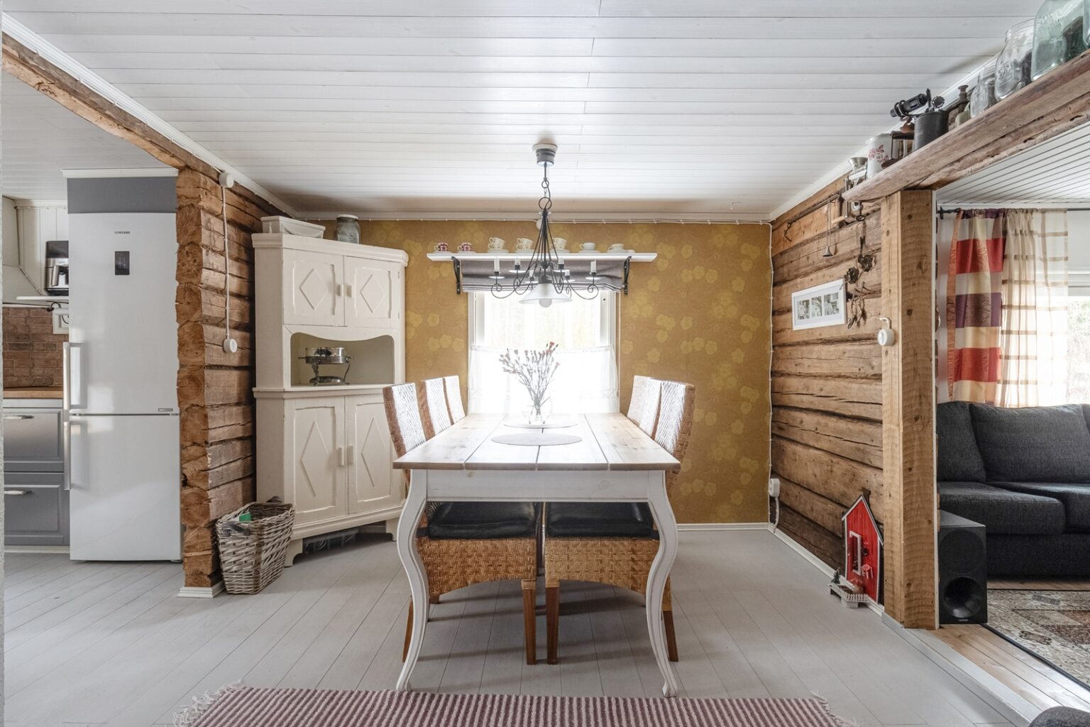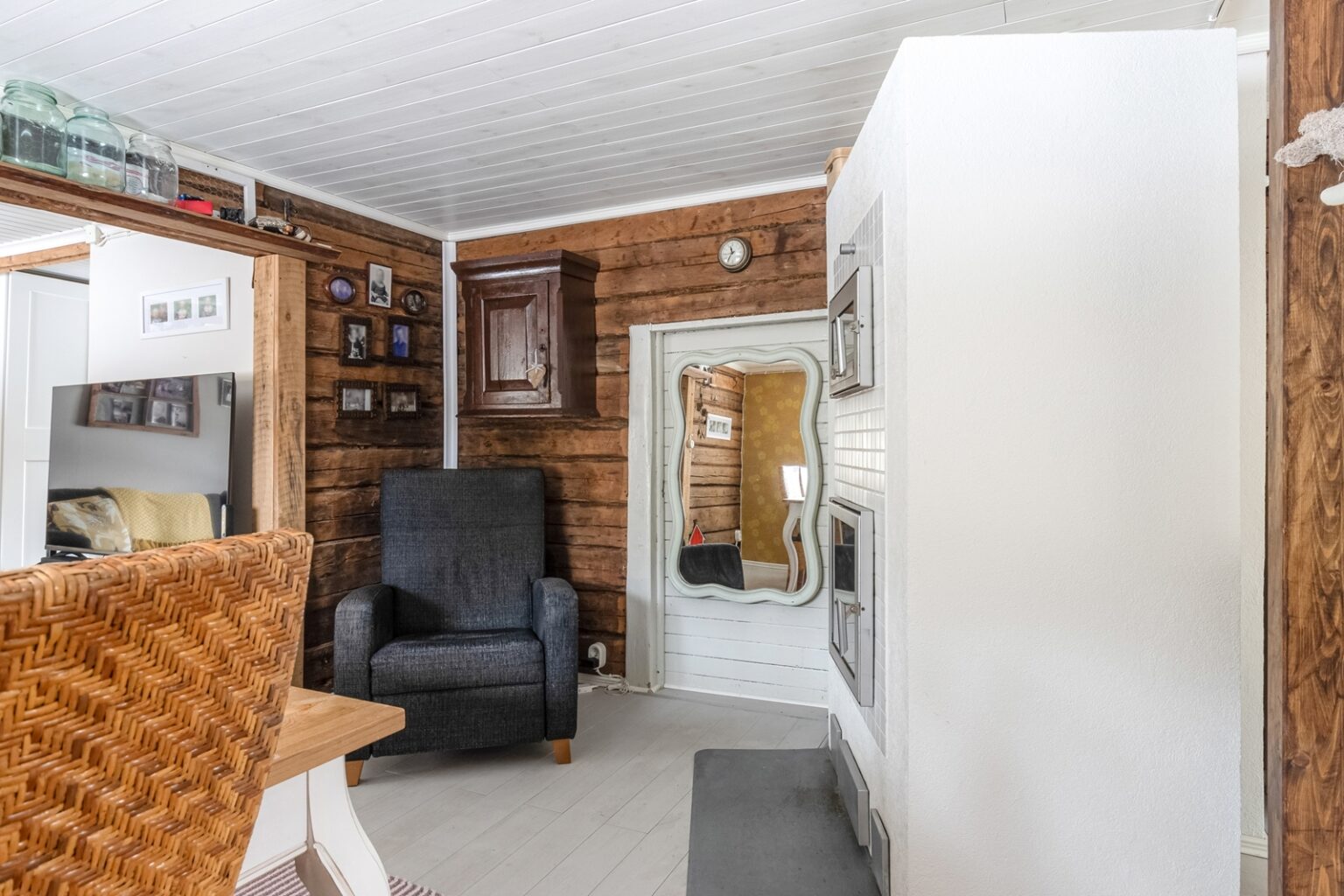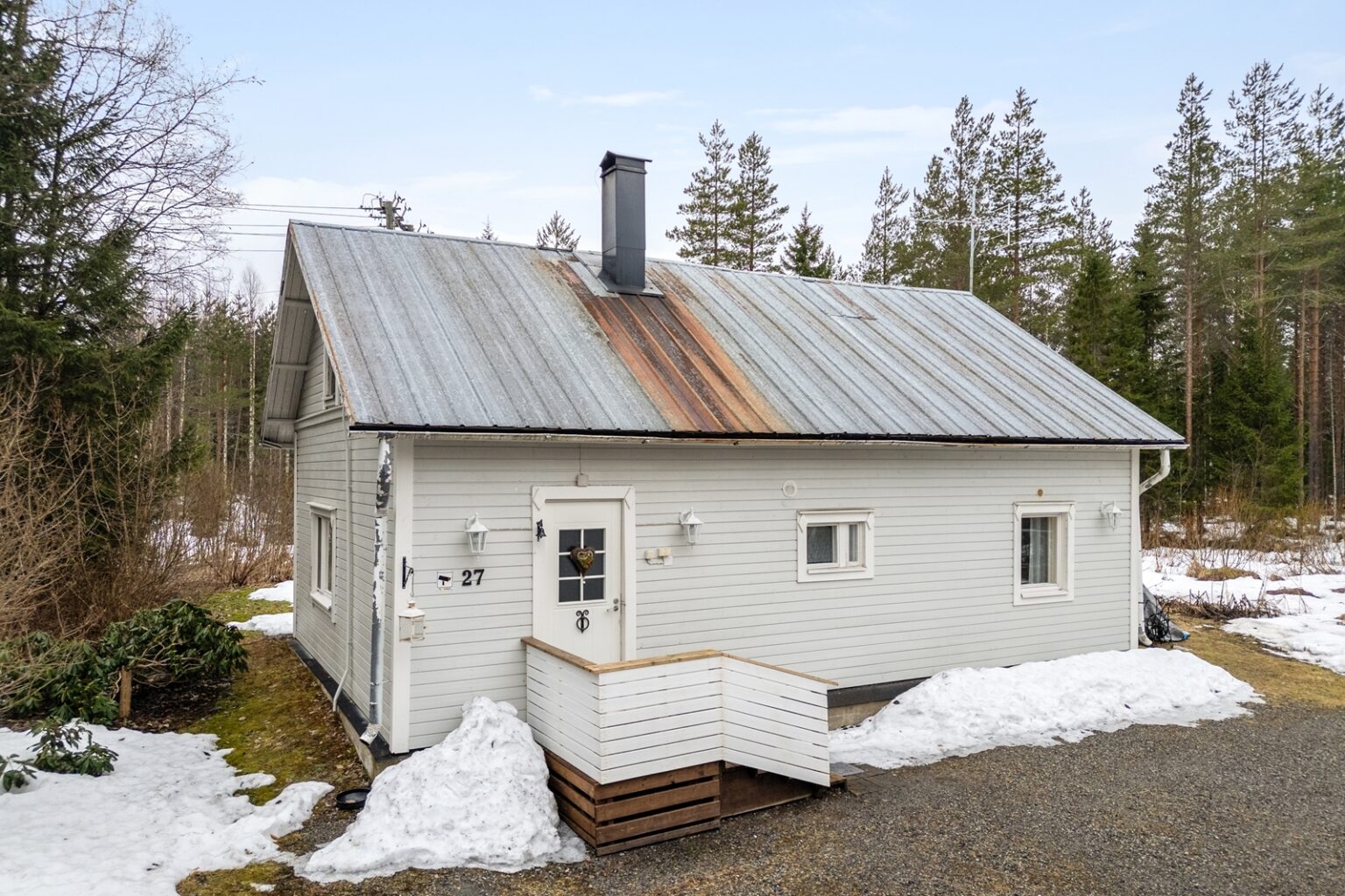 Tämä nätti, alun perin 1930 rakennettu hirsi-/puurakenteinen talo kätkee sisäänsä 2020 uusitun keittiön, ruokailutilan, olohuoneen, makuuhuoneen, eteisen sekä kylpyhuoneen. Saunomiseen on Laukaanjoen rannassa erillinen saunarakennus pukuhuoneella. Saunan terassin vierestä löytyy poreamme ja grillauspaikka. Lisäksi tontilla on erillinen varastorakennus.