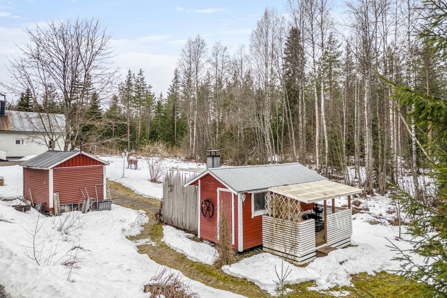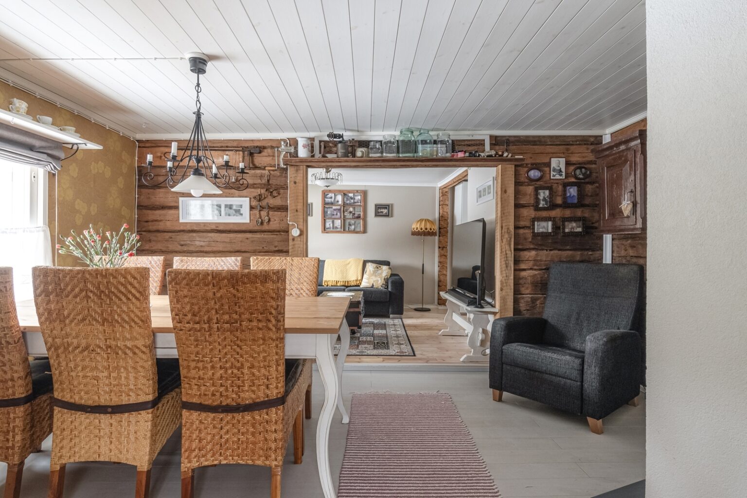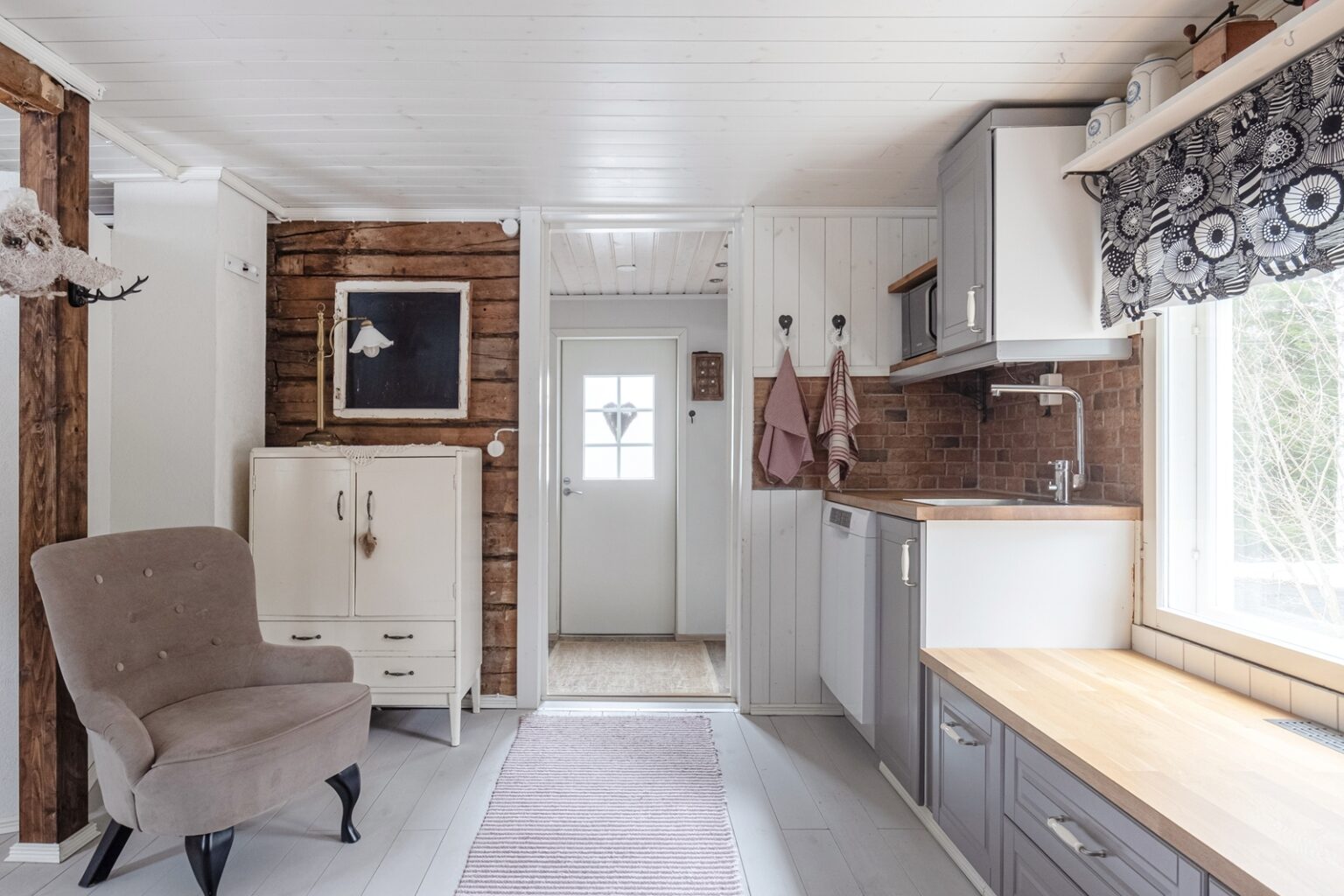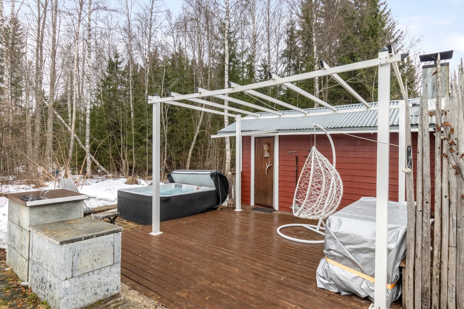 Tämä nätti, alun perin 1930 rakennettu hirsi-/puurakenteinen talo kätkee sisäänsä 2020 uusitun keittiön, ruokailutilan, olohuoneen, makuuhuoneen, eteisen sekä kylpyhuoneen. Saunomiseen on Laukaanjoen rannassa erillinen saunarakennus pukuhuoneella. Saunan terassin vierestä löytyy poreamme ja grillauspaikka. Lisäksi tontilla on erillinen varastorakennus.