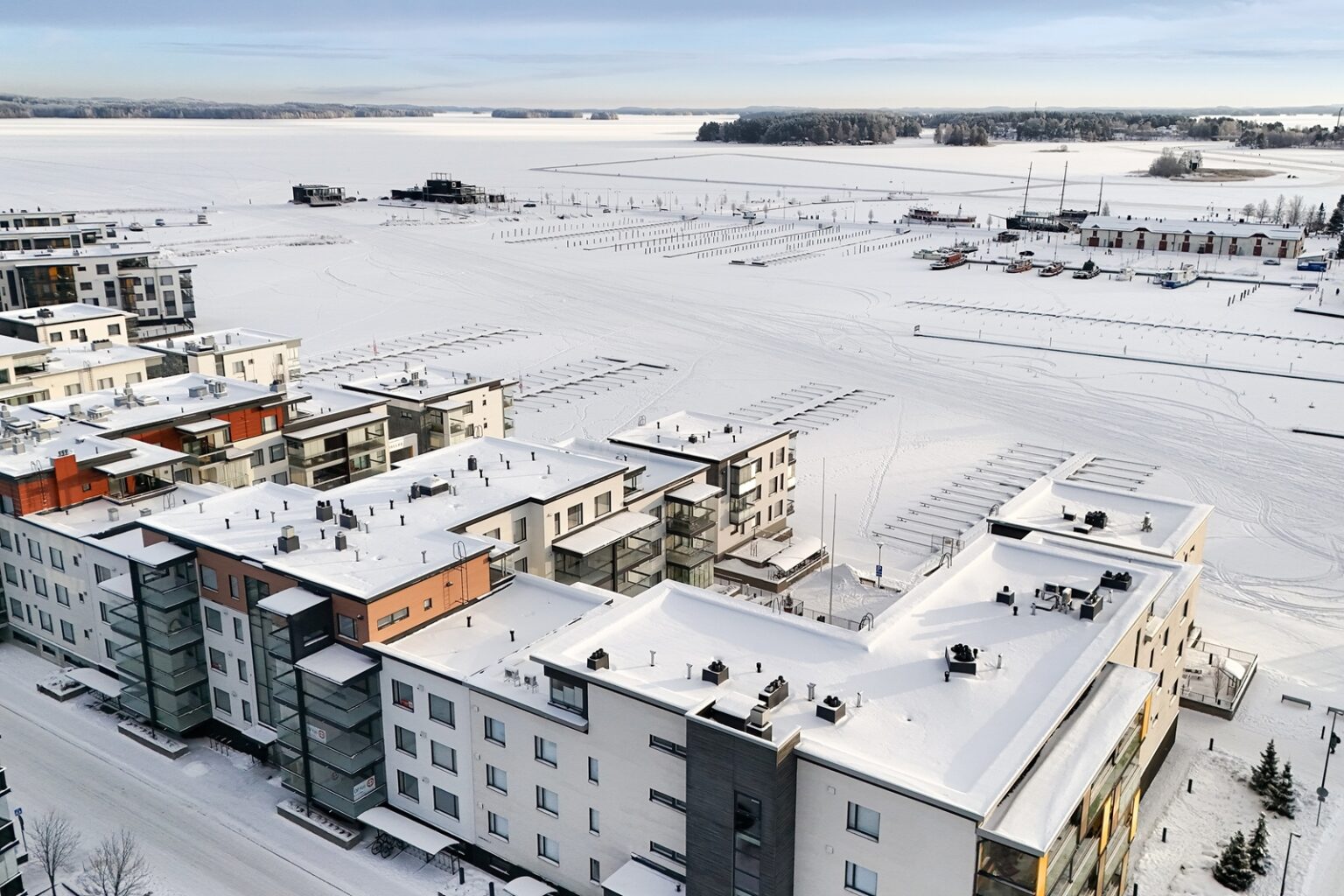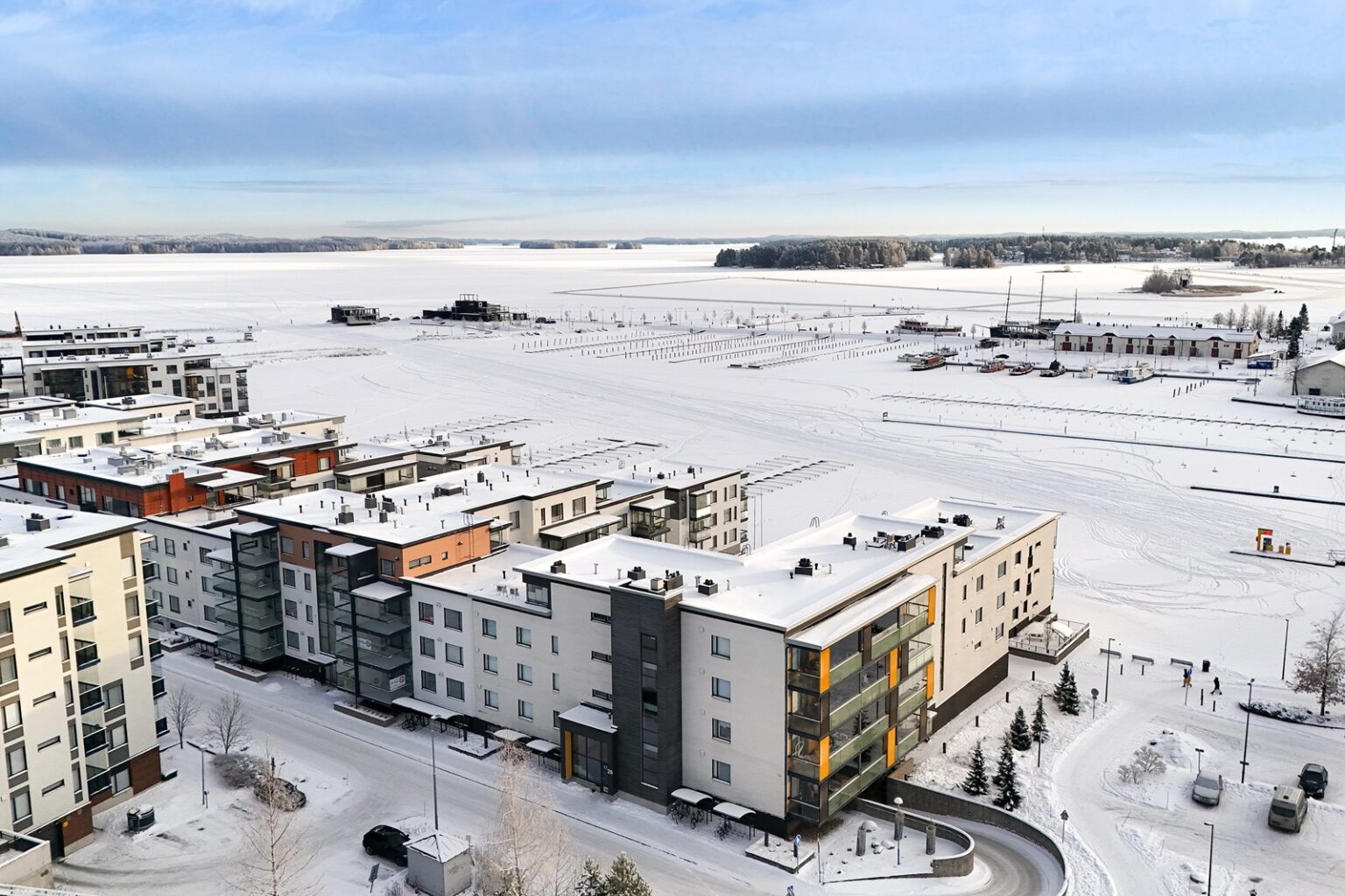 Osasta huoneistoja avautuvat kauniit järvinäkymät.