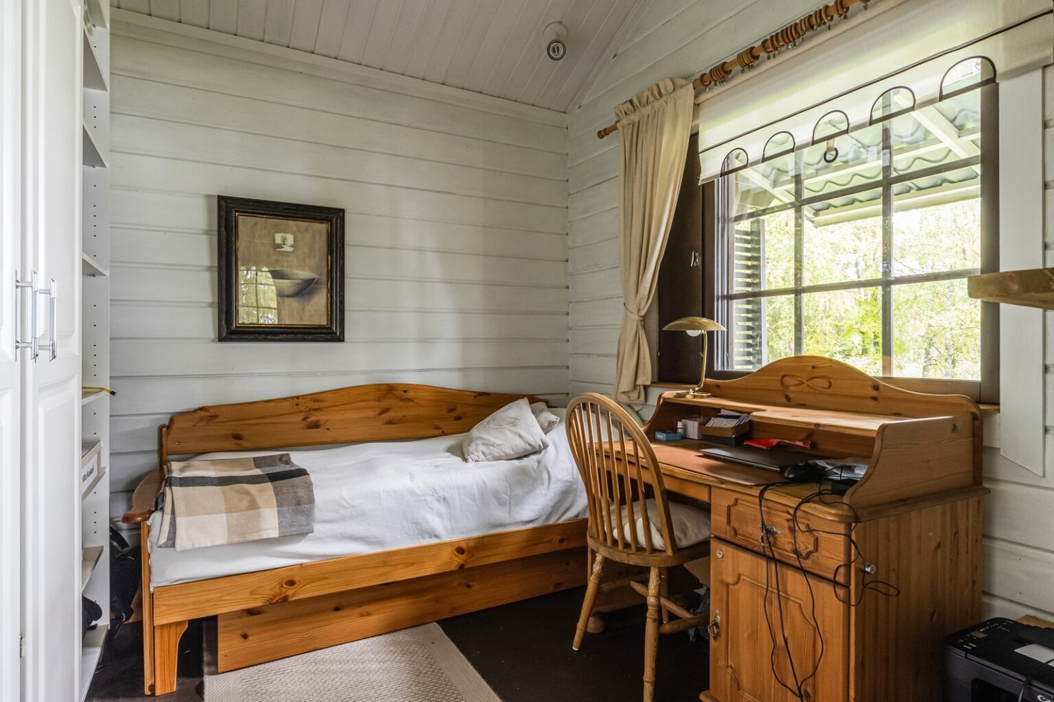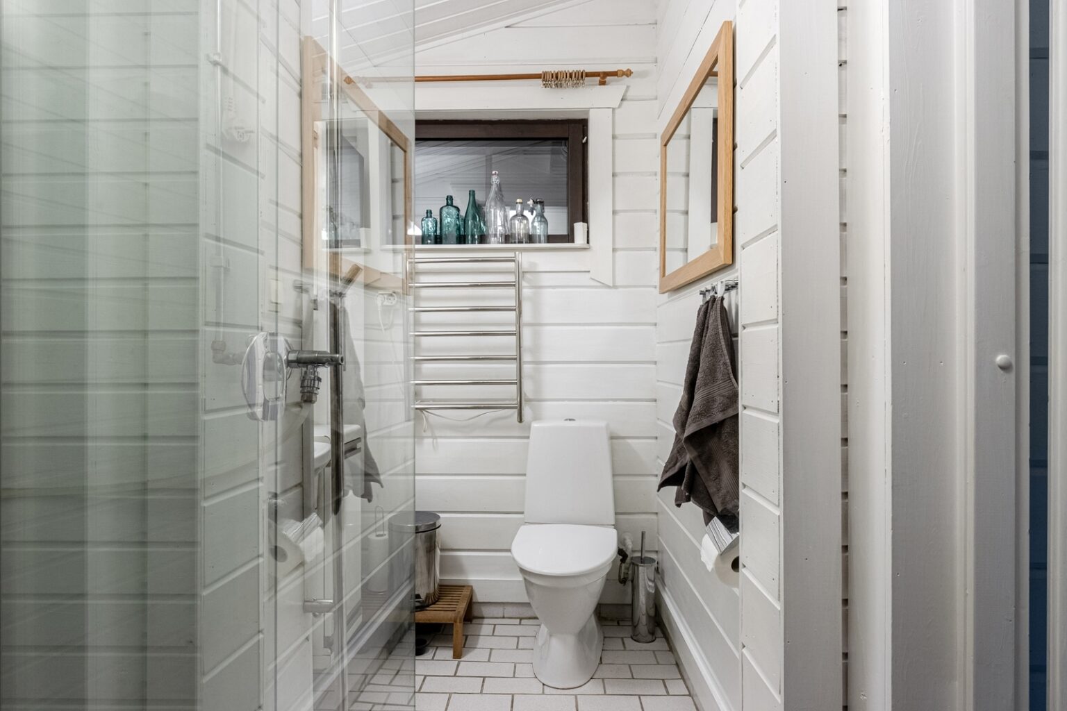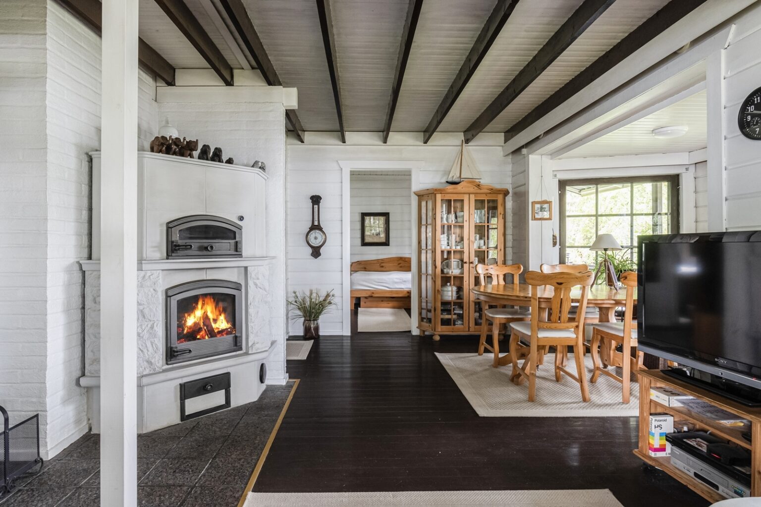 Hirsirakenteinen päärakennus, jossa on 2 makuuhuonetta, olohuone ja ruokailutila, keittiö ja apukeittiö, sauna/pesuhuonetilat, wc ja noin 23 m2:n yläkerta/parvi. Olohuoneessa on tunnelmallinen varaava takka ja leivinuuni ja lisäksi on ilmalämpöpumppu. Saunassa on puukiuas.