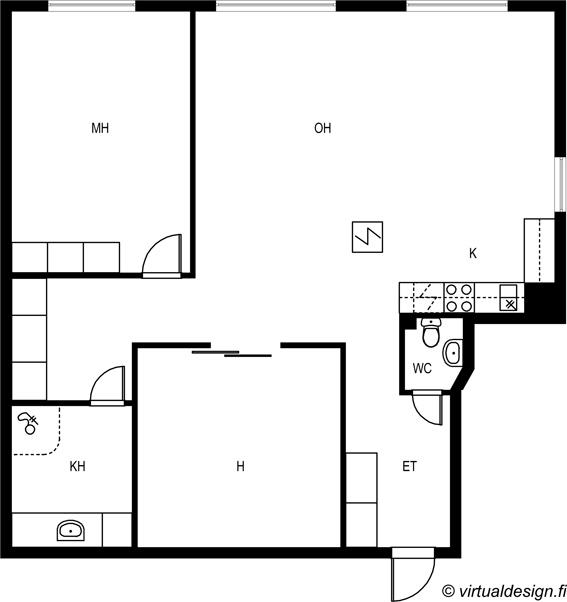 | Tehdyt korjaukset | - 2016 keittiö remontoitu, purettu väliseiniä ja uusittu pintoja. - Kylpyhuone remontoitu 2010-luvulla |