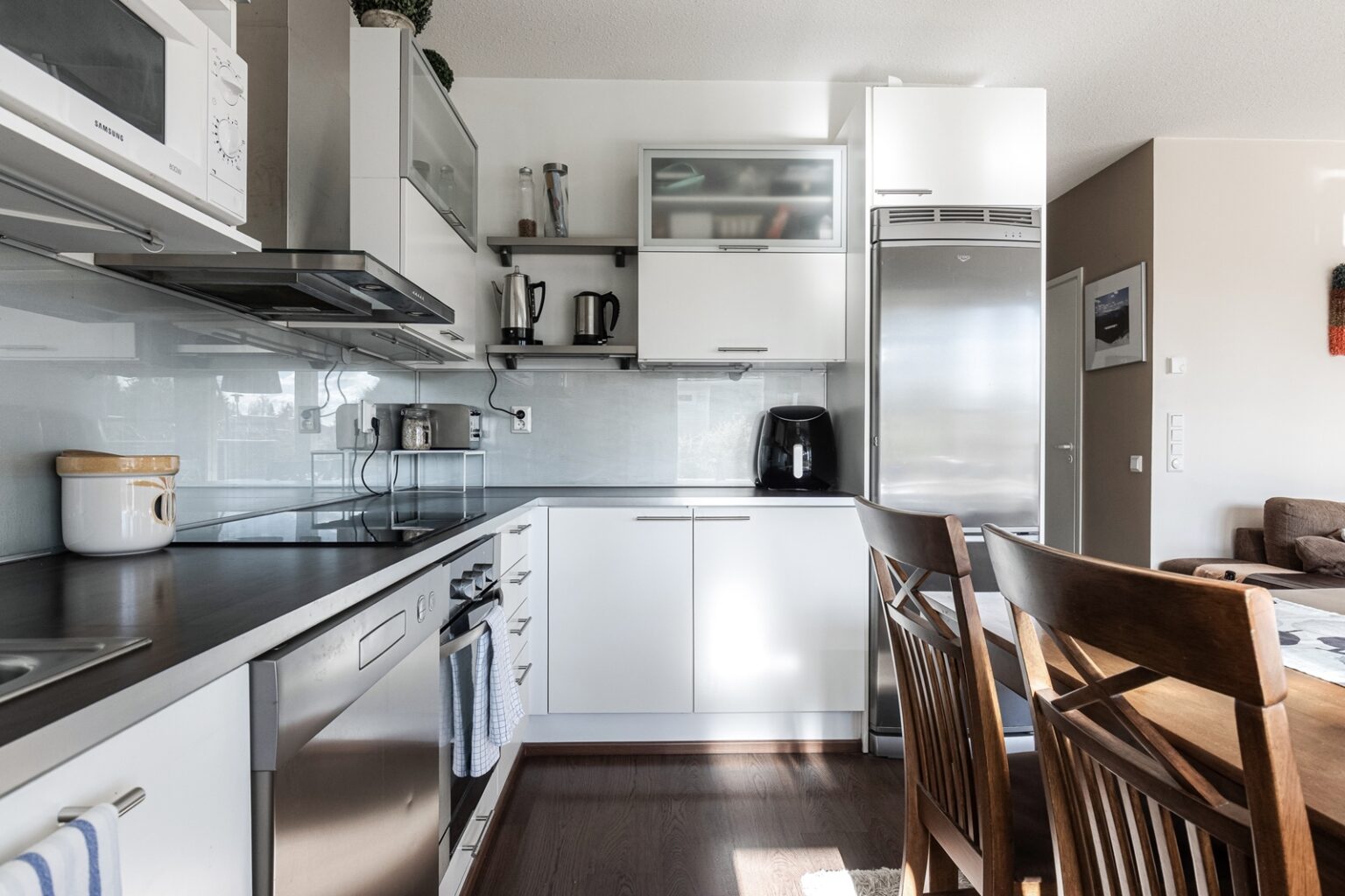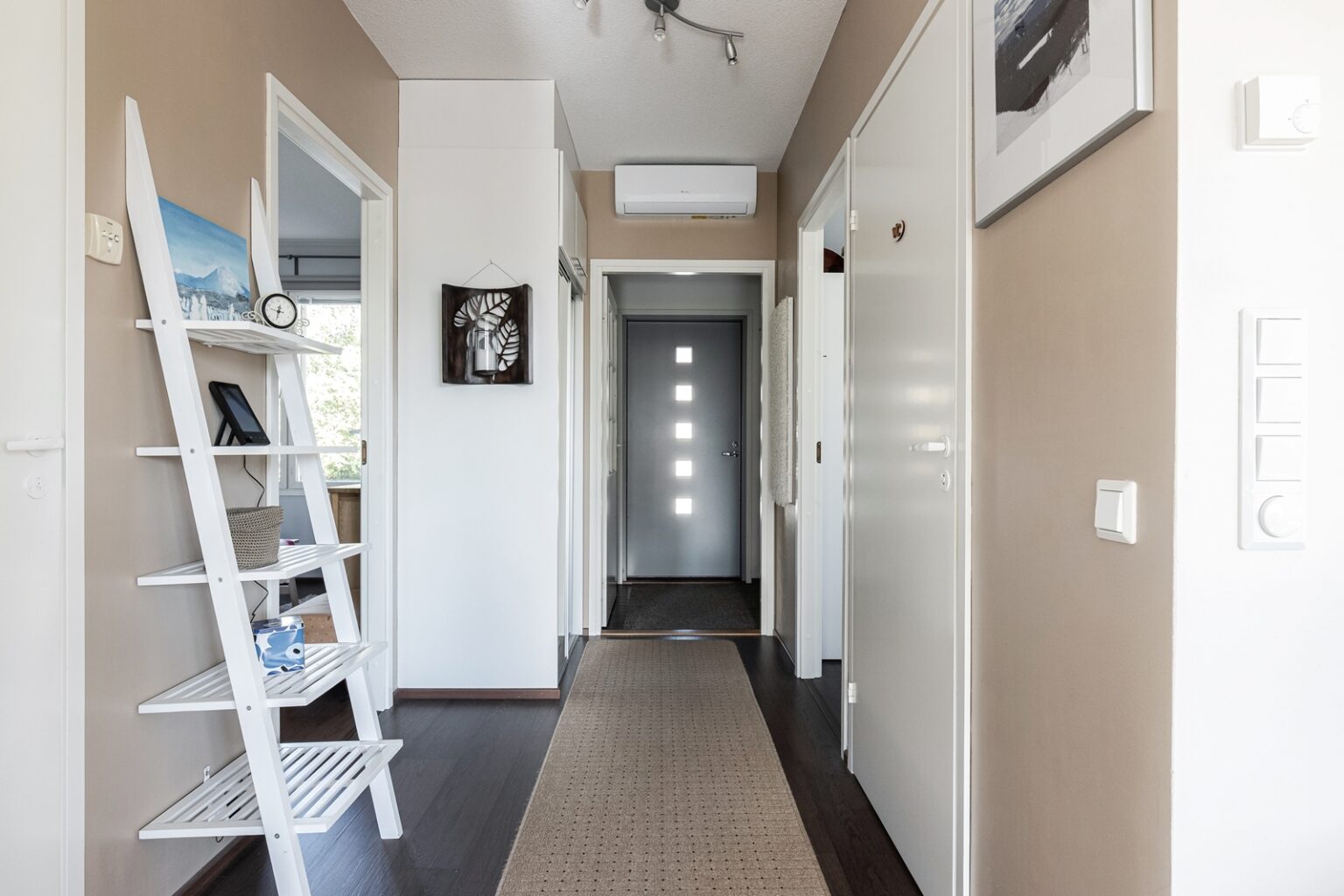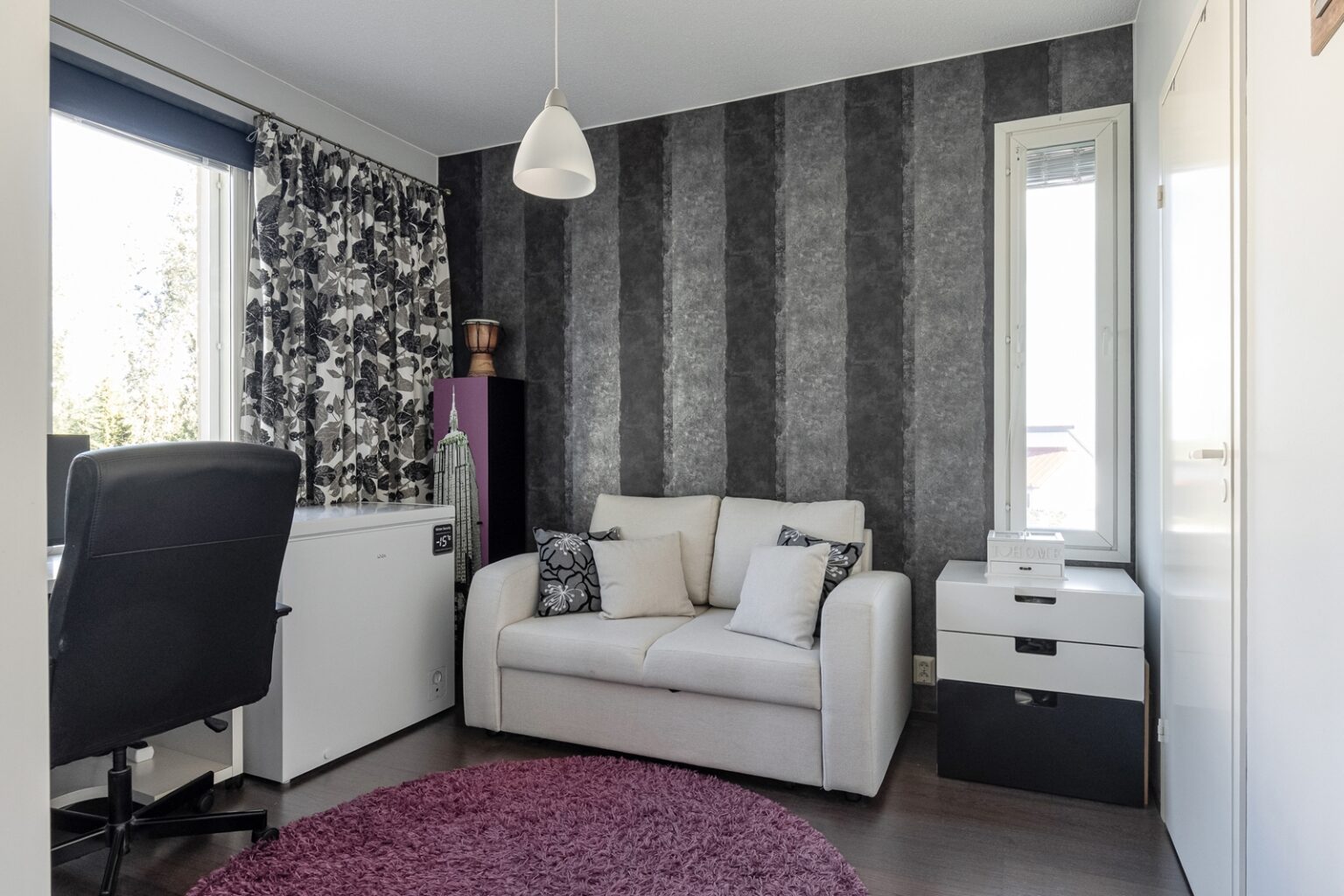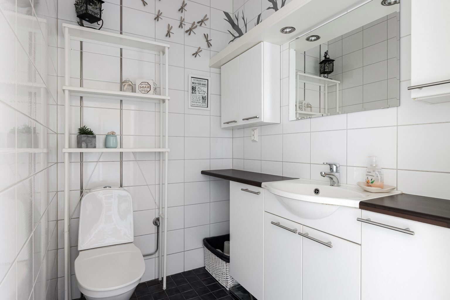 Huoneistossa on kaksi hyvän kokoista makuuhuonetta, joista toisessa on oma vaatehuone. Lisäksi kodissa on erillinen wc, kodinhoitotila, tilava pesuhuone sekä oma sauna. Asumisen helppoutta lisää 1-tasoisuus.