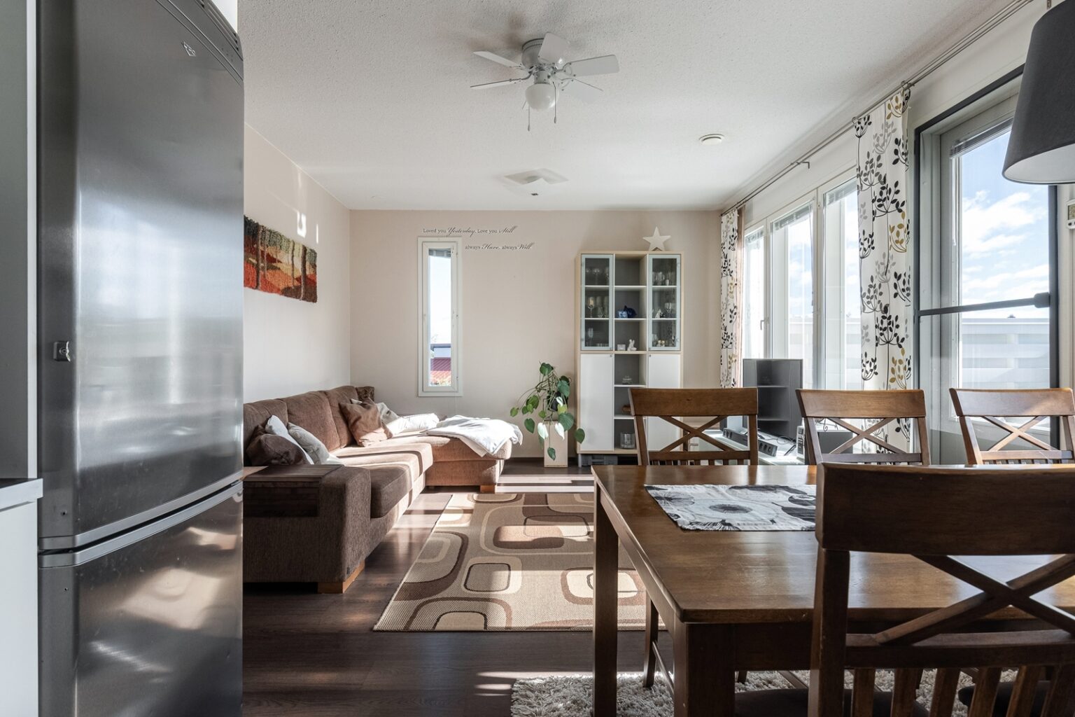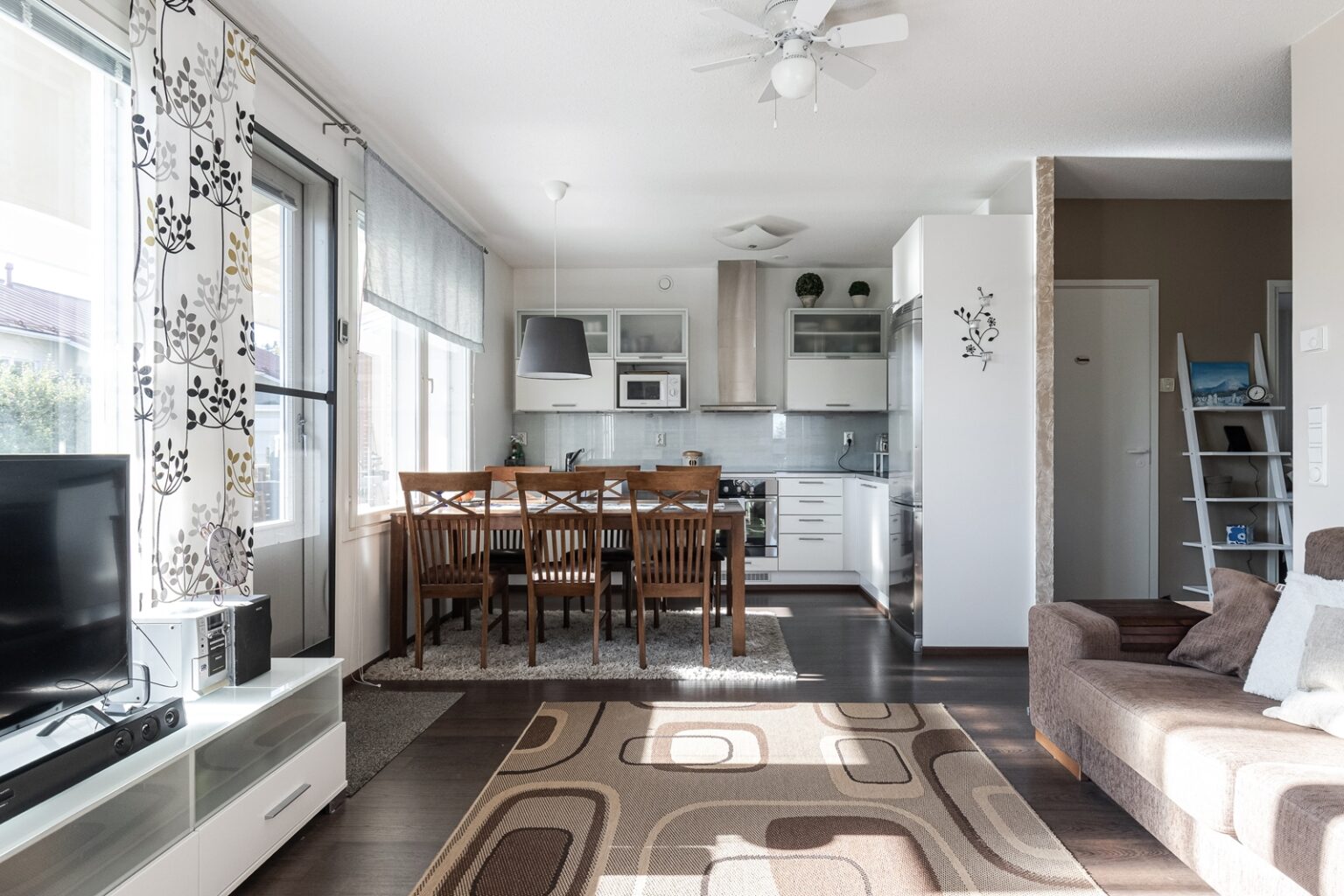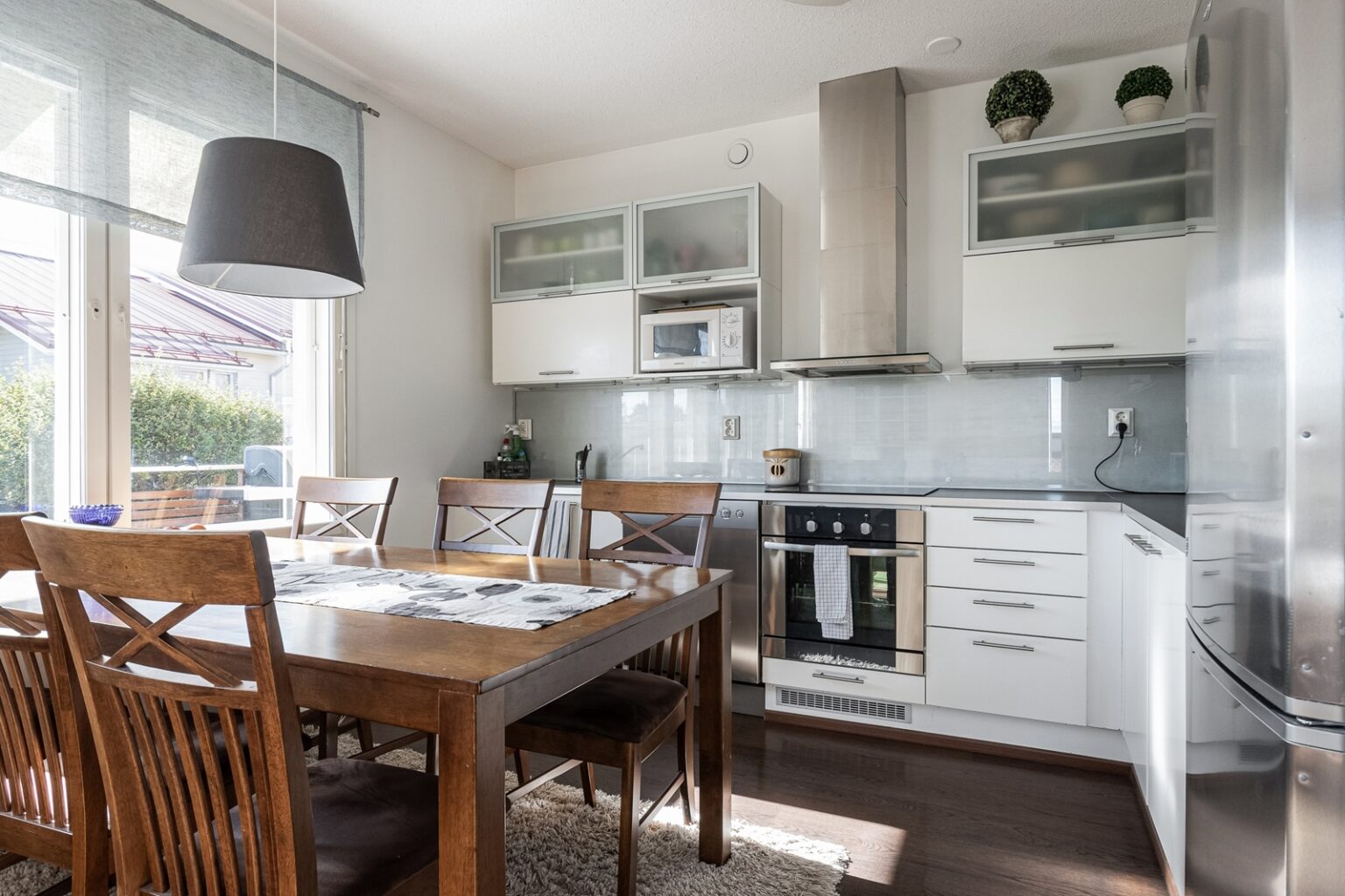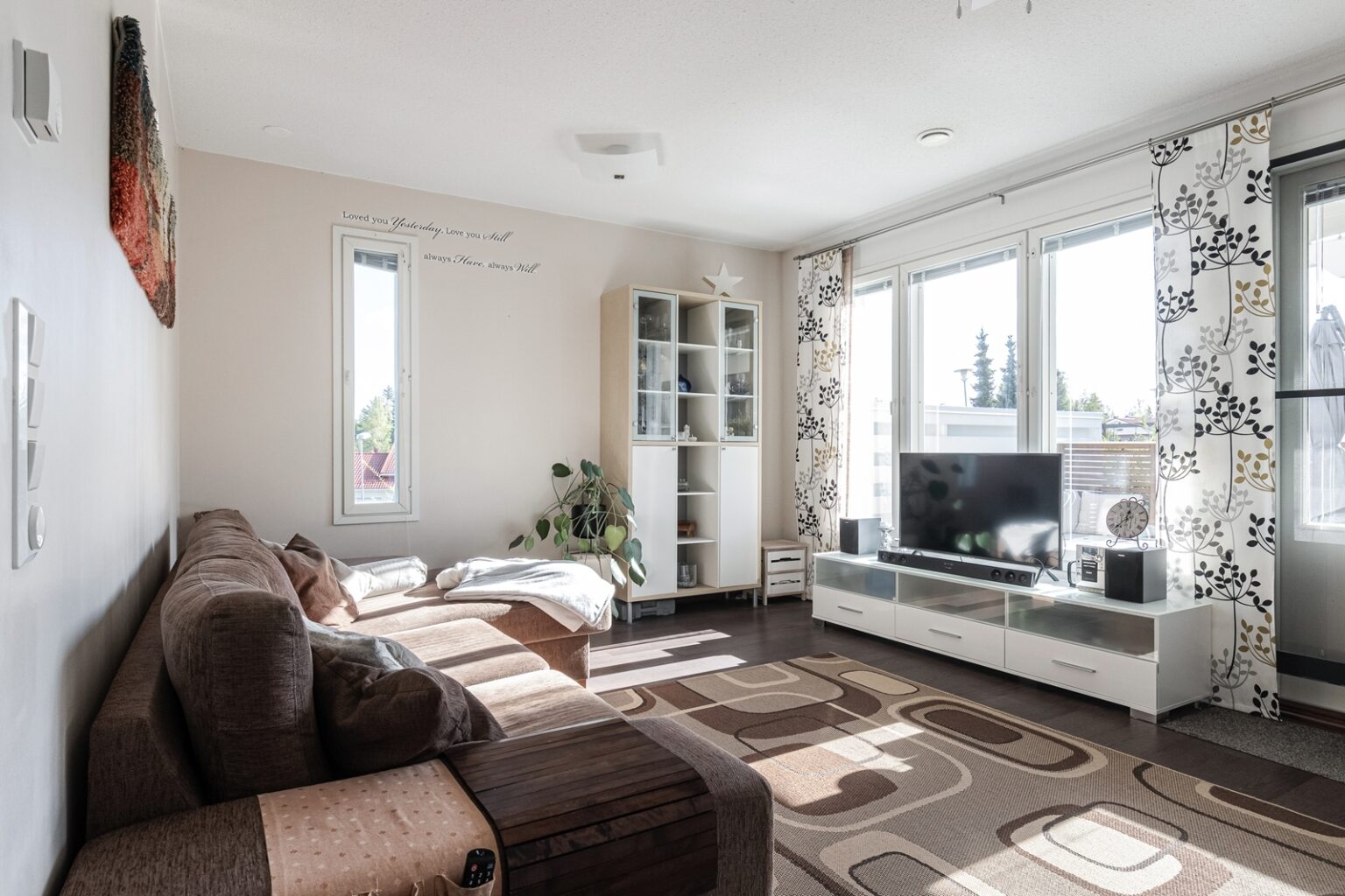 Tervetuloa tutustumaan viihtyisään ja valoisaan rivitalokolmioon, joka sijaitsee päättyvän kadun varrella rauhallisessa yhtiössä (valm. 2009). Tämä yksitasoinen päätyhuoneisto tarjoaa käytännöllisen ja kodikkaan kokonaisuuden, jossa arki sujuu vaivatta.