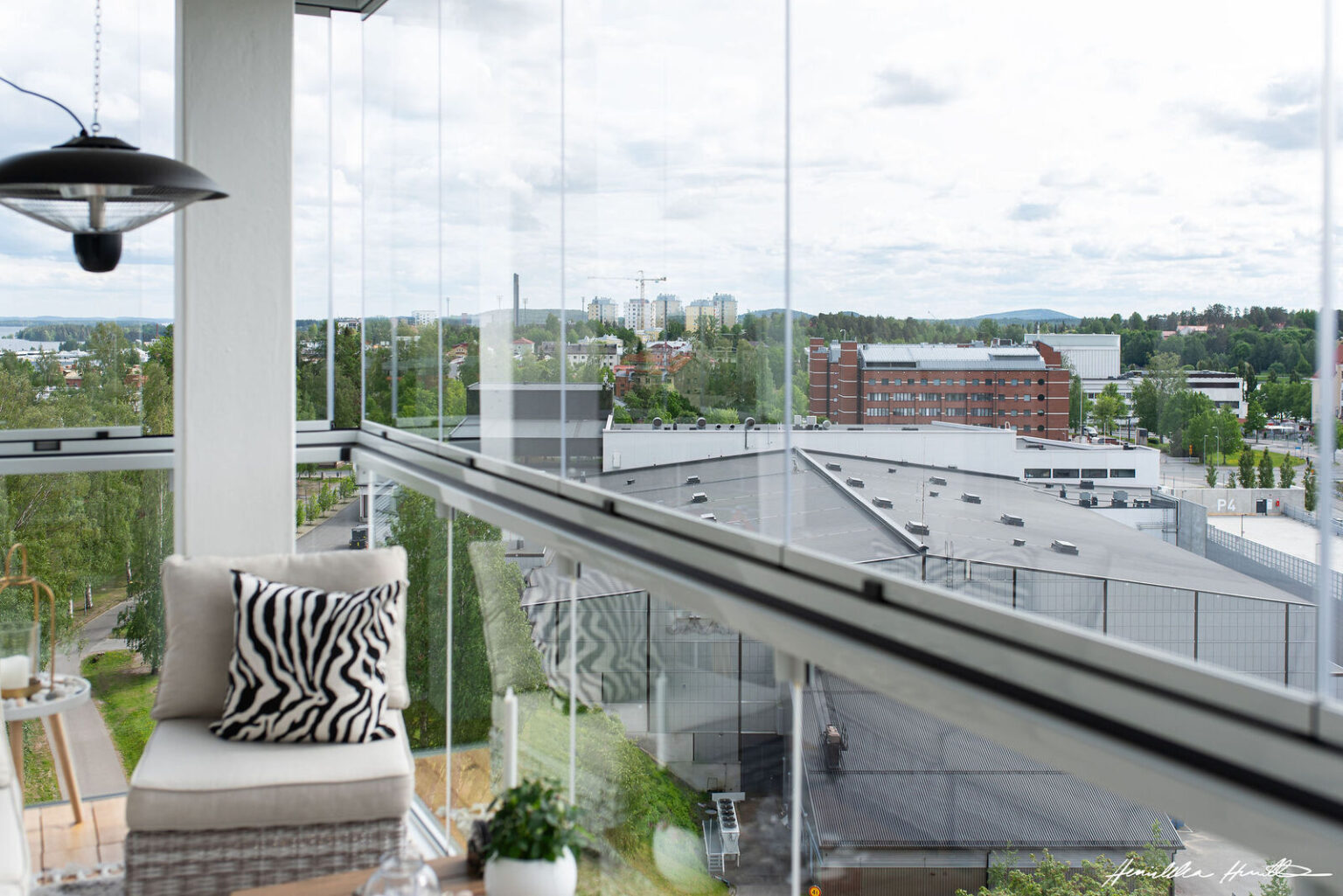 Kaupunkiasujan unelmakoti, Kotikatu 365 yhteisöllisen ja savuttoman kerrostalon ylin valoisa 10/10. krs, 3 <(4) h + vh + kph + s + 2 wc + lasitettu iso parveke puulankkulattialla etelään päin.