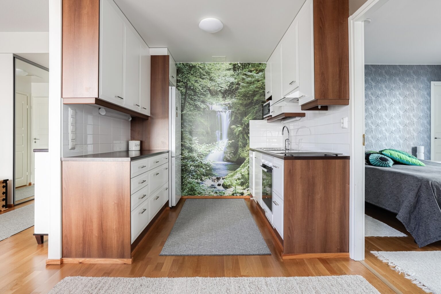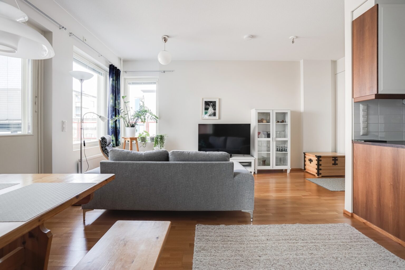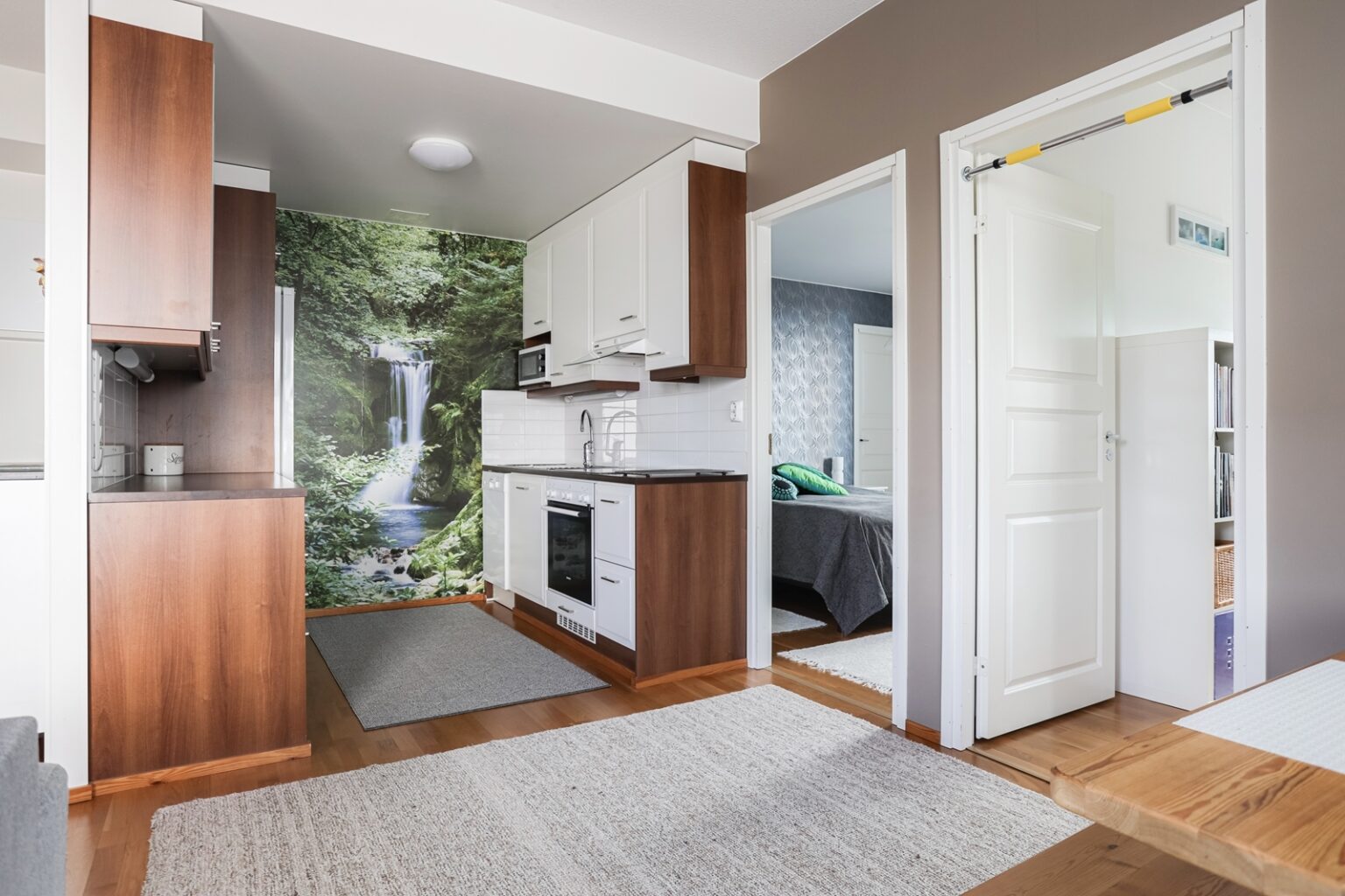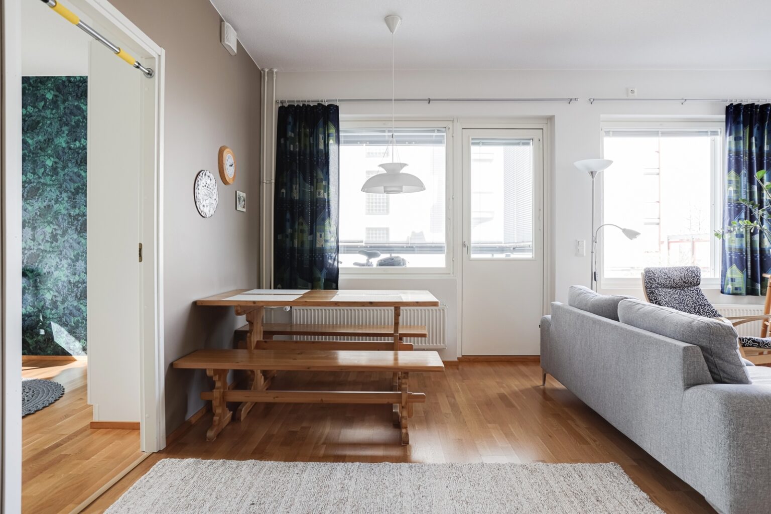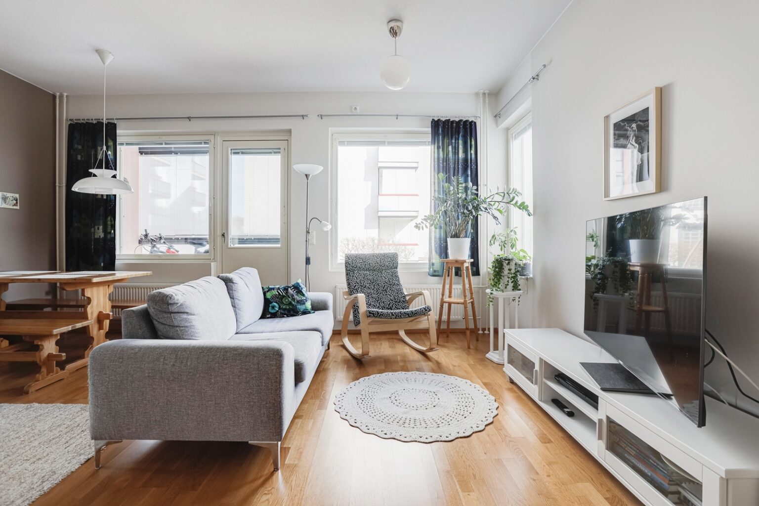 Asunto sijaitsee kätevästi ensimmäisessä asuinkerroksessa. Tehokas pohjaratkaisu (3h+k+s) yhdistää keittiön ja olohuoneen yhtenäiseksi oleskelutilaksi. Tilasta on käynti lasitetulle parvekkeelle, joka toimii mukavana lisätilana pitkälle syksyyn.