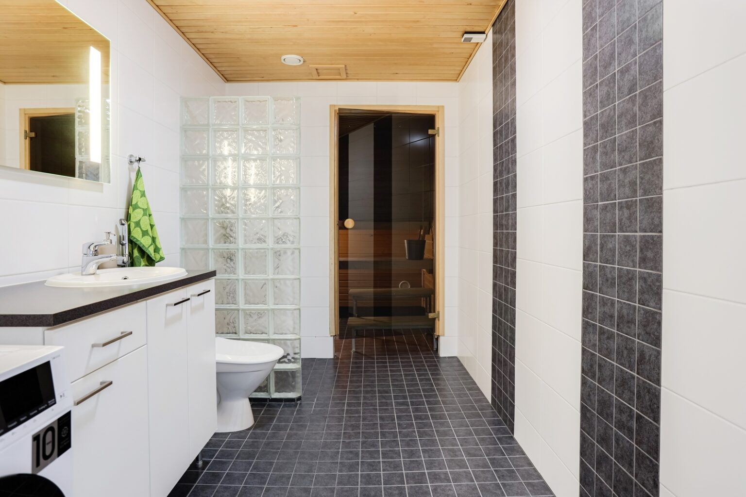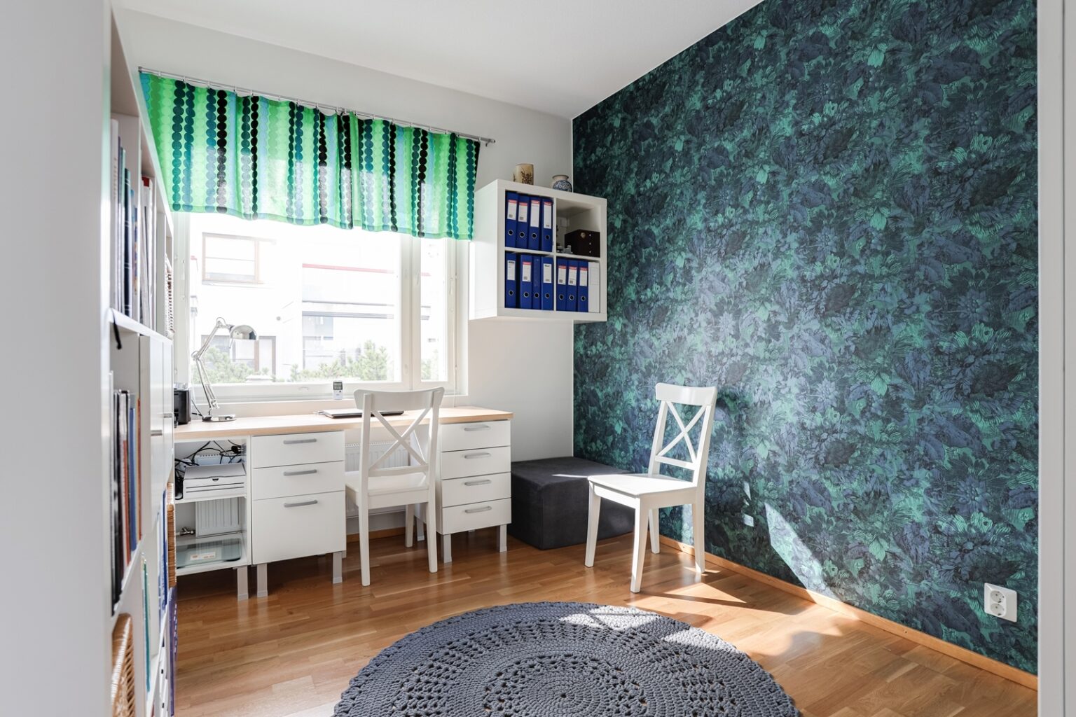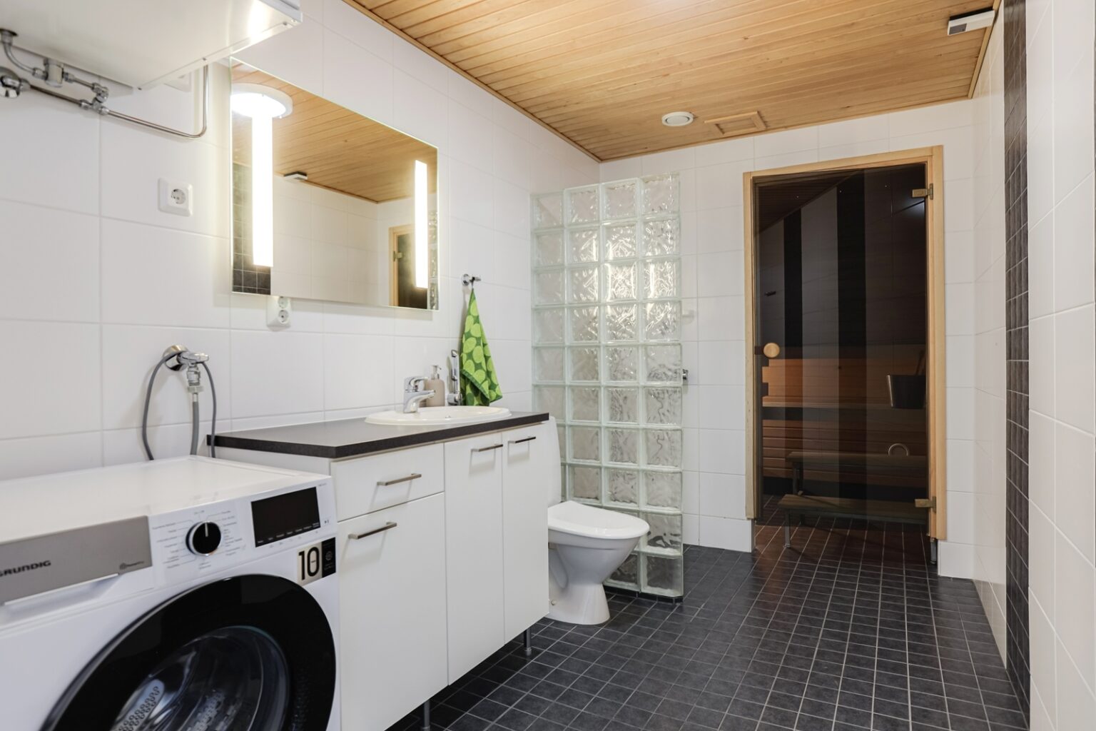 Kaksi hyvänkokoista makuuhuonetta tarjoavat tilaa niin perheelle, työhuoneelle kuin vierashuoneellekin molemmissa huoneissa on kaapistot. Tilava kylpyhuone ja oma sauna tuovat arkeen ripauksen luksusta.