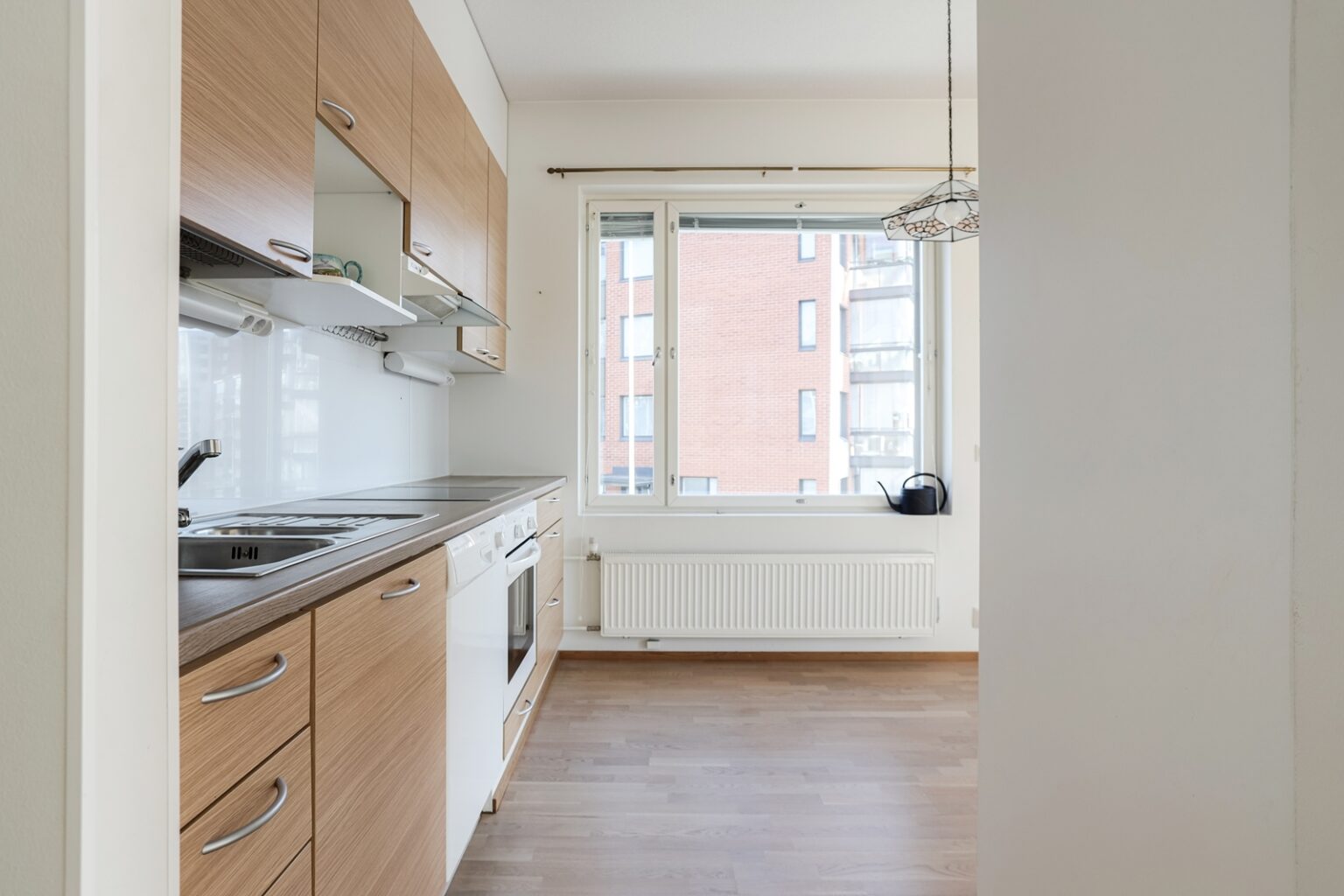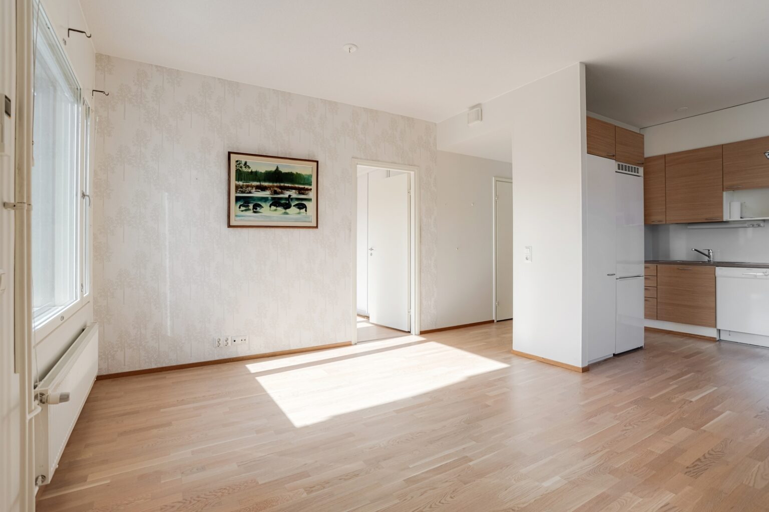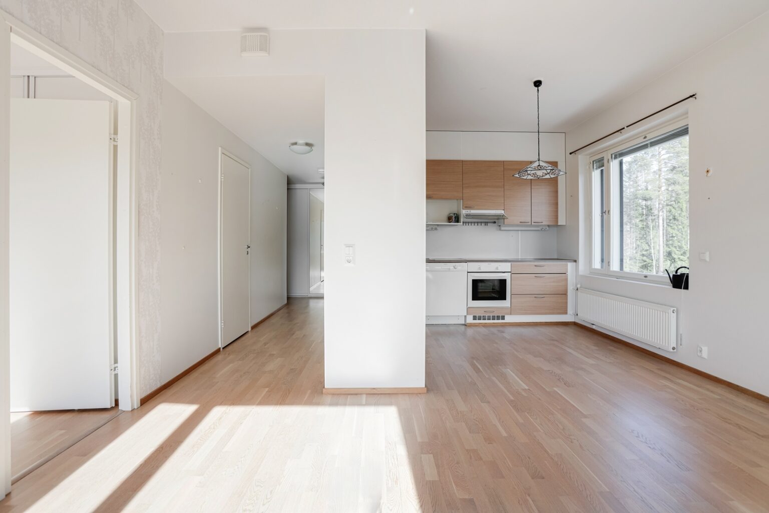 Asunnon pohjaratkaisu on tehokas ja arkea sujuvoittava. Valoisa olohuone yhdistyy luontevasti keittiöön, ja kokonaisuus jatkuu lasitetulle, hyvän kokoiselle parvekkeelle, jolta avautuvat näkymät Kallavedelle yli kattojen.