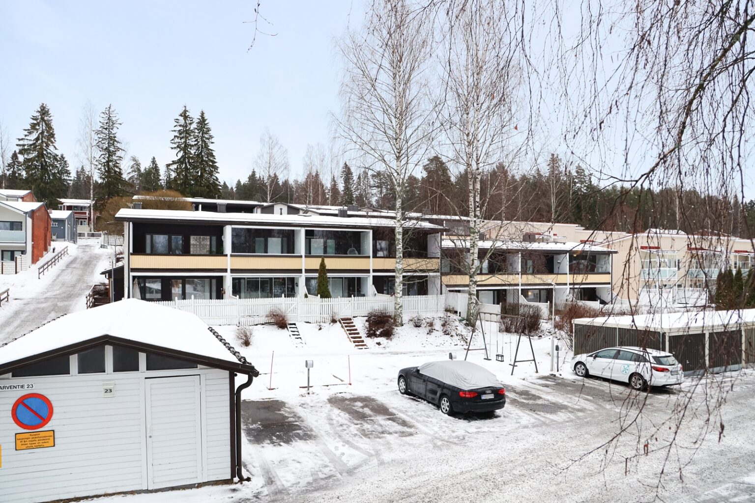 | (Taloyhtiön) Rakennukseen tehdyt korjaukset ja remontit | 1996: Parvekelattioiden pinnoitus. 1997: Räystäskourujen uusinta A-talo. 1999: Varastojen kattojen korjaus. 2005: Ulkovaraston laajennus. 2006: Lämmönjakolaitteisto uusittu. 2007: IV-puhdistus. 2011: Pihaväylän ja D-talon väylän asfaltointi. 2011: Ulko-ovet ja lukitus uusittu. 2011: Parikkipaikkojen lämpötolppien uusiminen ja autotallien kellokytkimien uusiminen. 2013: Kattoremontti. 2015: Patteriventtiilien uusiminen termostaattiventtiileiksi. 2016: Lämmitysjärjestelmän perussäätö. 2020: IV-kanavien puhdistus. 2021: Ikkunoiden ja parveke/terassi-ovien uusiminen. |