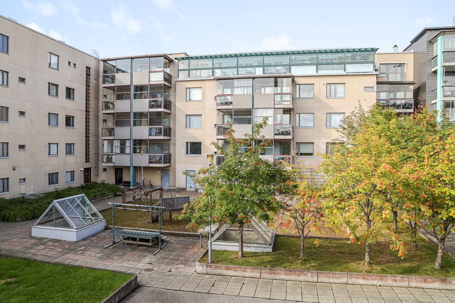 Taloyhtiöllä on oma tontti, ja sisäpihan puolelta on esteetön sisäänkäynti.