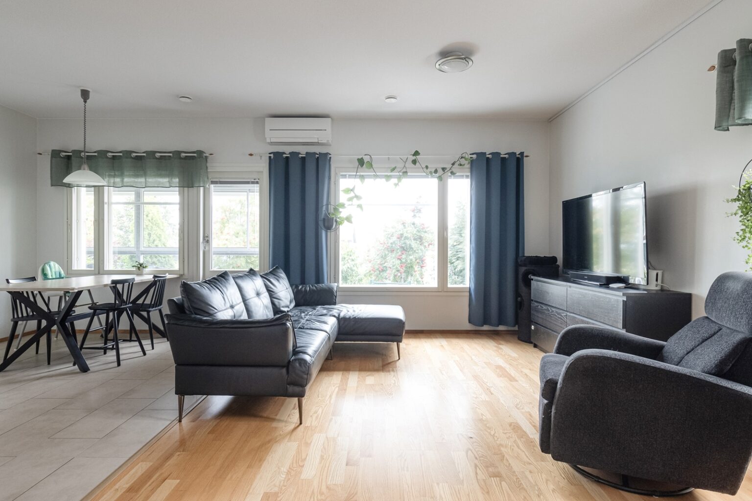 2009 valmistuneessa Kodissa on avara yhtenäinen keittiö-olohuone kokonaisuus, kaksi makuuhuonetta, kaksi WC:tä (toinen kph:n yhteydessä), kylpyhuone kodihoitotilalla sekä sauna. Mukavuutta arkeen tuo lasitettu terassi ja viilennystä kesään ilmalämpöpumppu.