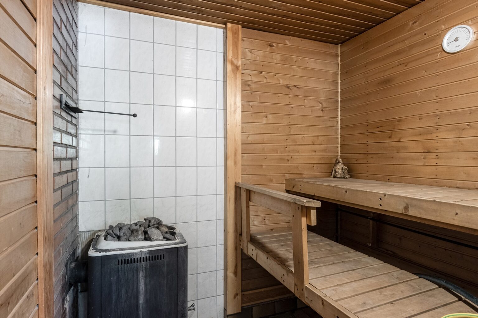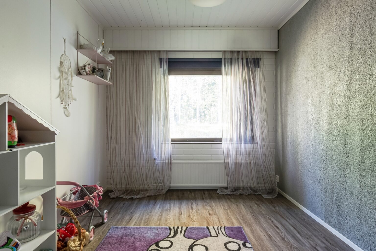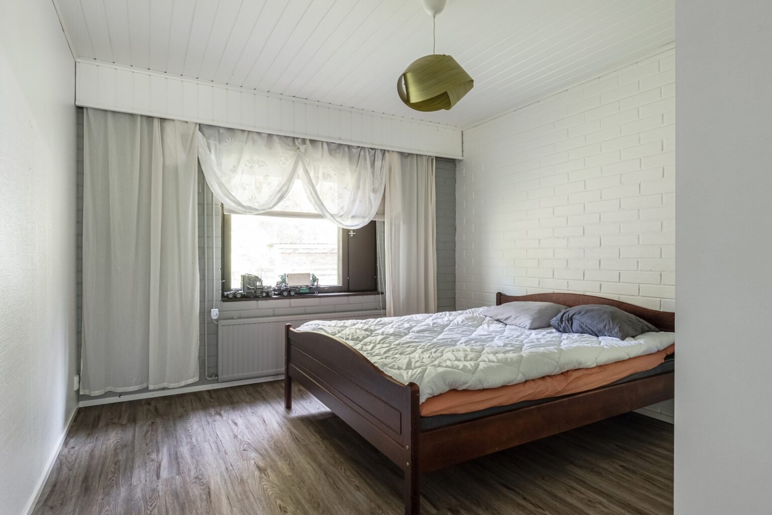Asuminen on yhdessä tasossa: kolme makuuhuonetta, olohuone, kodikas keittiö, jossa tunnelmaa tuovat leivinuuni ja puuhella. Tilava kodinhoitohuone tarjoaa arjen sujuvuutta ja siitä on käynti suoraan ulos. Saunaosastolla viihtyy perinteisen puukiukaan lämmössä, ja pesuhuone on hyvänkokoinen.