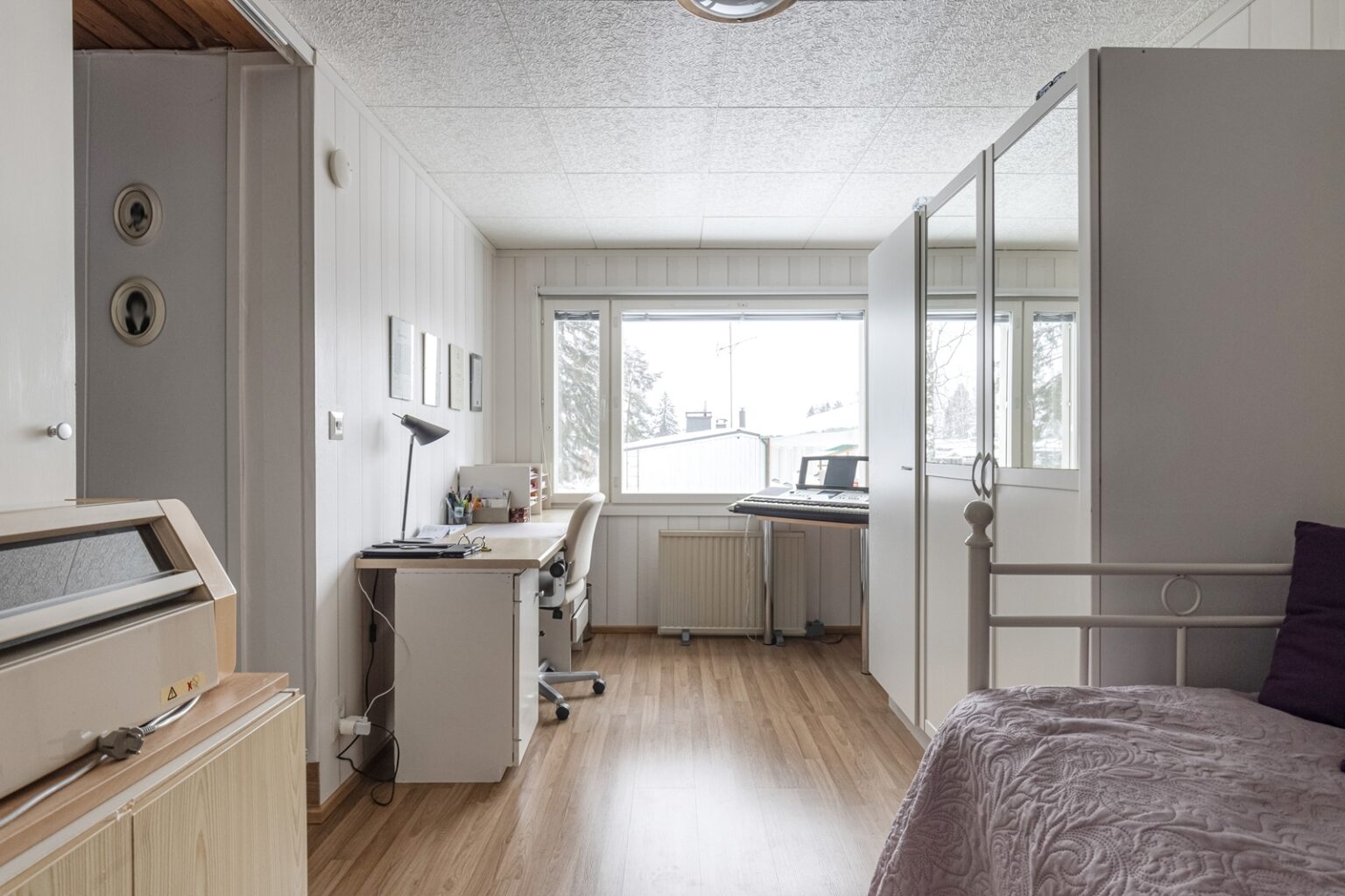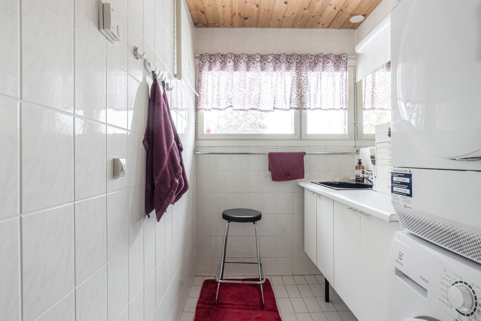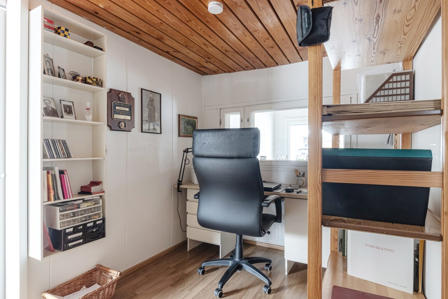 Kodin tilaratkaisu mahdollistaa myös joustavan käytön – entisestä autotallista on tehty askarteluhuone, joka sopii mainiosti työhuoneeksi tai harrastuksiin. Lisäksi on myös kellaritila.