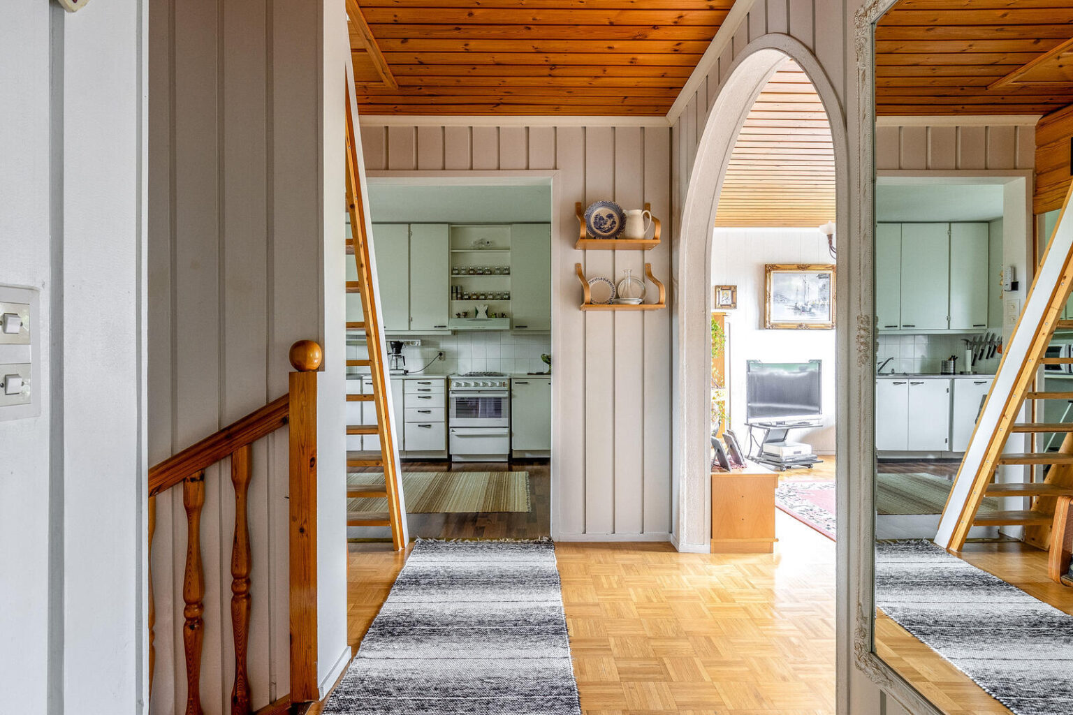 Keski-kaari 12 A, 1979 rakennettu porrastettu omakotitalo. Tilava keittiö, olohuone, josta on käynti parvekkeelle, kaksi makuuhuonetta ja wc-tila. Alakerrassa on takkahuone, sauna/pesuhuonetilat, kodinhoitohuonetila, wc ja autotalli.