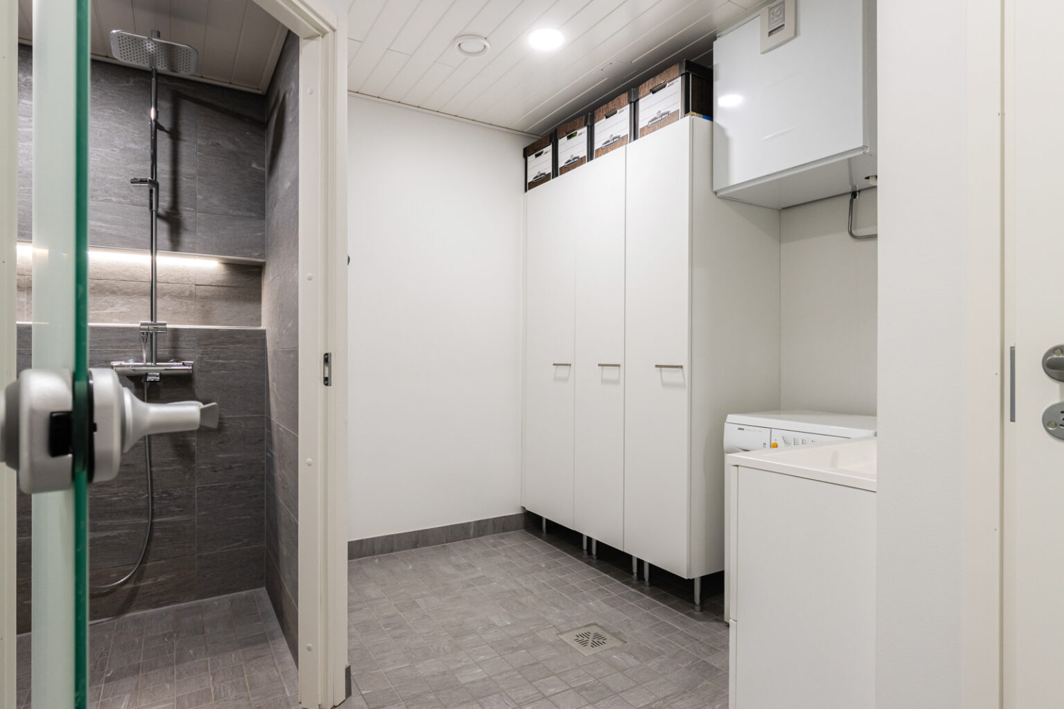 2019 valmistuneesta maalämmöllä lämpiävästä taloyhtiöstä Ihana Koti autotallilla.