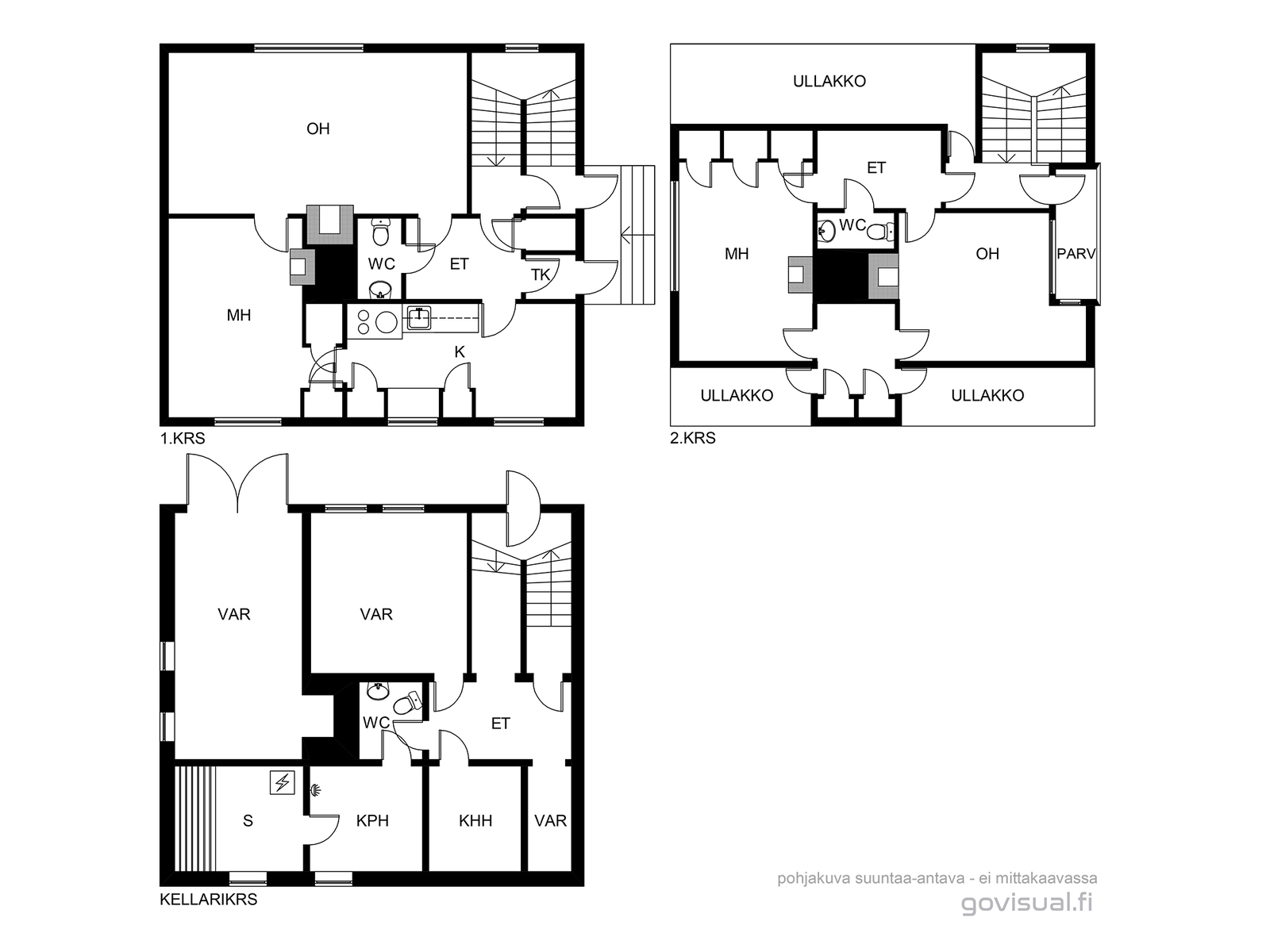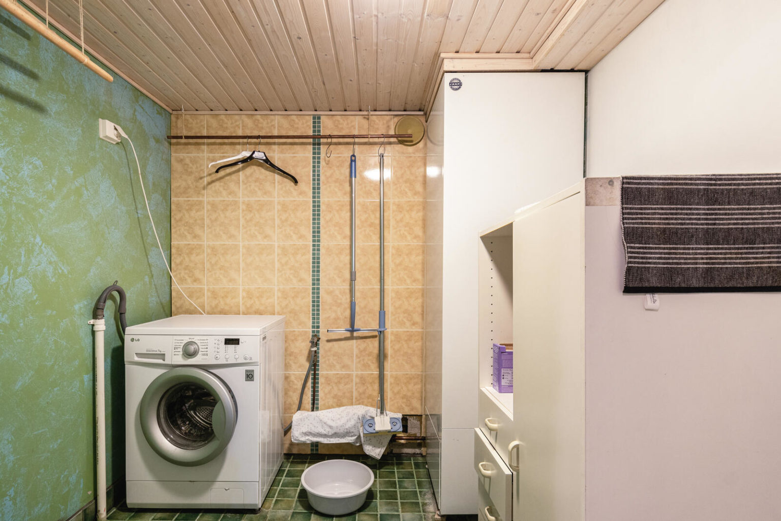 | Lämmitysjärjestelmä ja sen kunto | Keittiössä on sähköpatteri, muutoin pönttöuuneissa on vastukset ja kellarikerrokssa on lattialämmitys. |