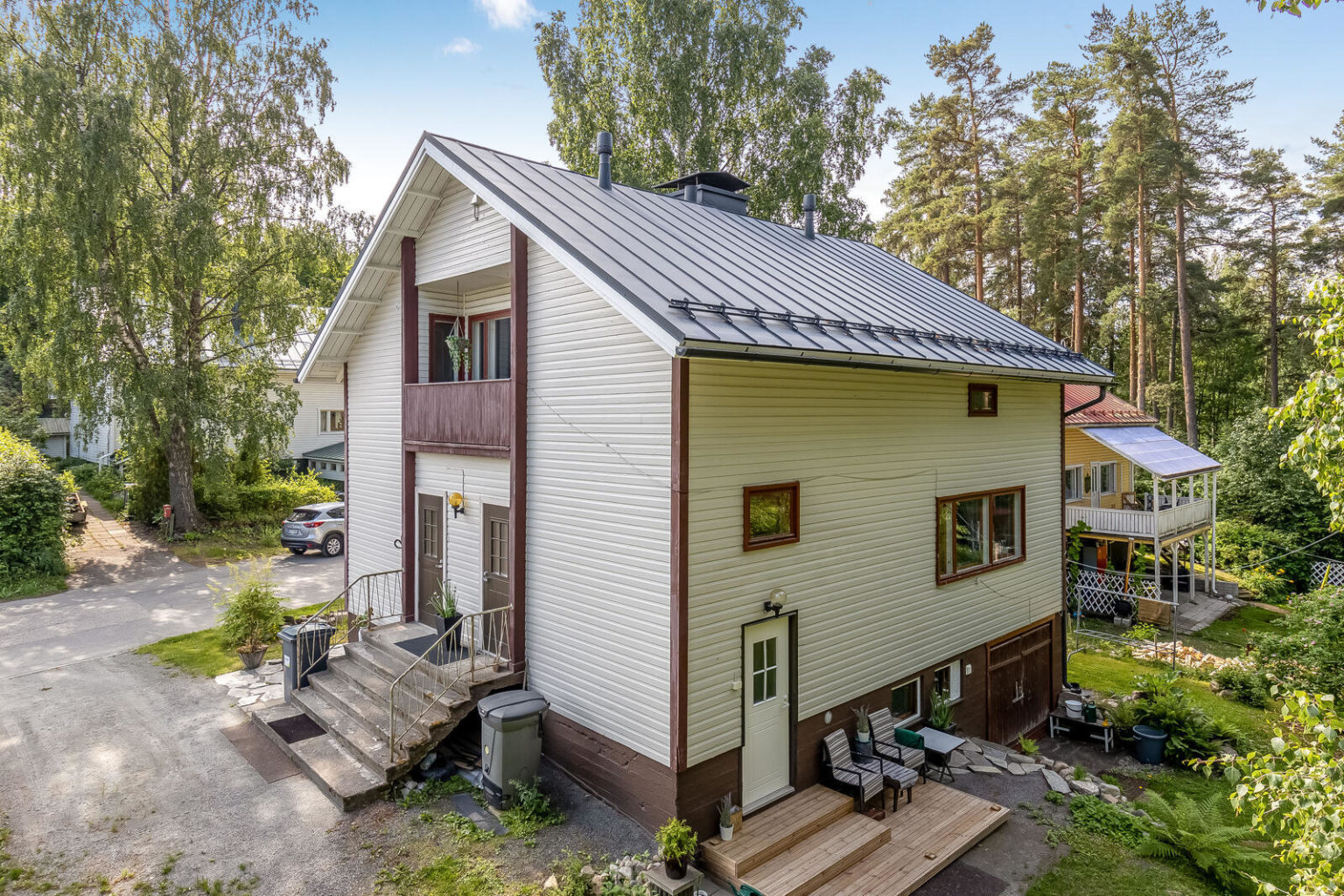| Lisätietoa kunnosta | 2009 Salaojitus 2010 Saunaremontti, kylphuone, alakerran putket, käytävän/portaikon eristys. Uusi takaovi. Yläkerran, keskikerroksen wc-remontit ja alakertaan wc. 2018 Alakerran kaikki lattiat laatalle. Puuosien poisto. Tuuletusräppänät x 2 ja reiät portaiden alle. Portaiden alustan lattian valu. 2019 Sokkelin maalaus. 2020 ulkoseinien maalaus. 2021 kadunpuoleisen ulkoseinän takuumaalaus. 2022 Konesaumattu peltikatto 2022 Kellarikerroksen portaitten alavarastoon pax-poistopuhallin. KPH silikonit uusittu. Suihkusekoittimet alakerta, keskikerroksen wc-tilan hana sekä yläkerran bidee. Korvausilmaventtiilit alakerran makuuhuoneeseen ja yläkerran kahteen makuuhuoneeseen. |