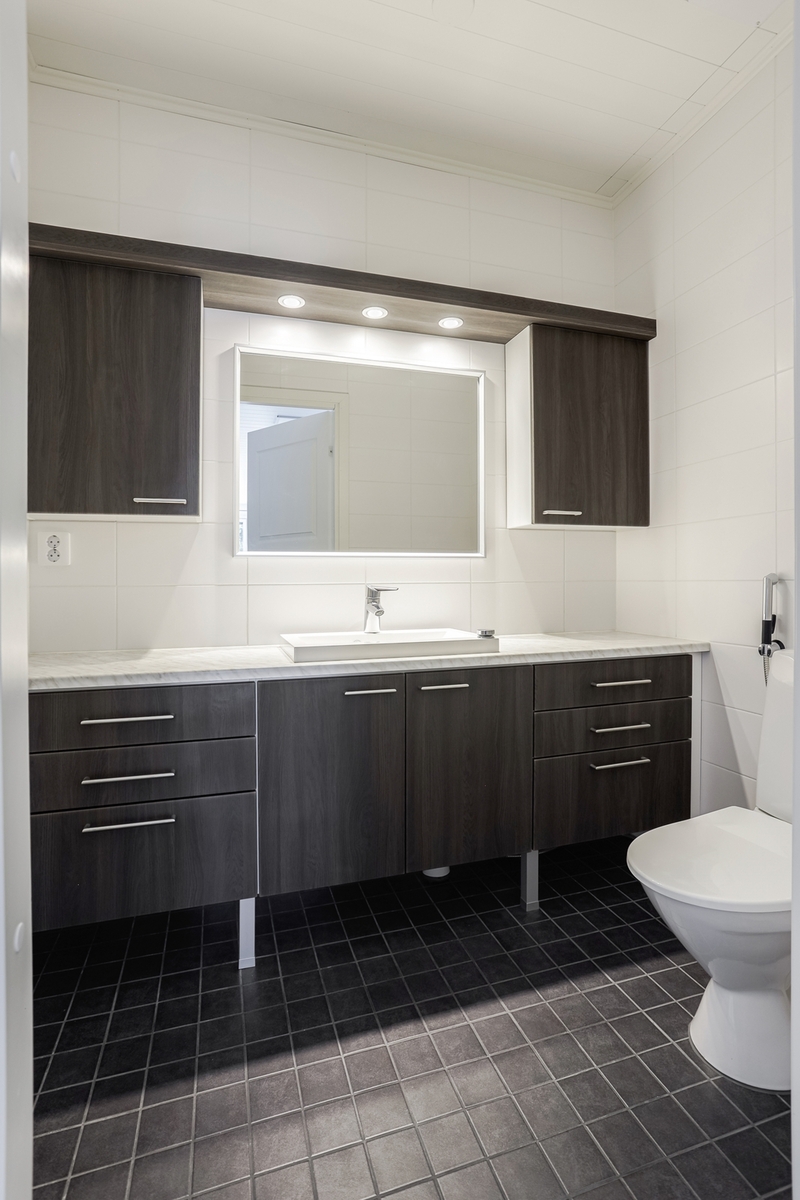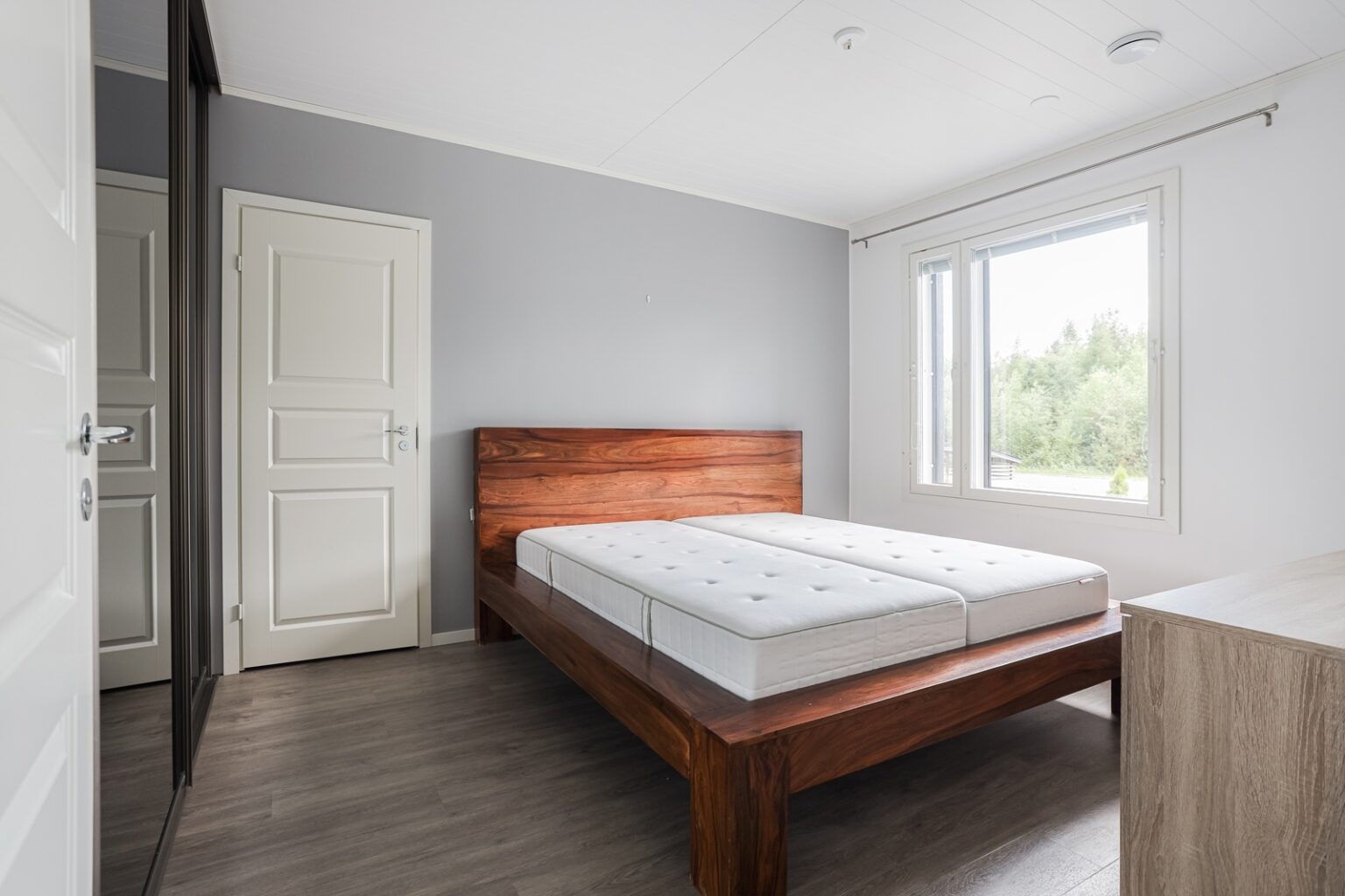 Kolme reilunkokoista makuuhuonetta ja kahden vaatehuoneen avulla säilytät vaatteesi ja tavarasi kätevästi.