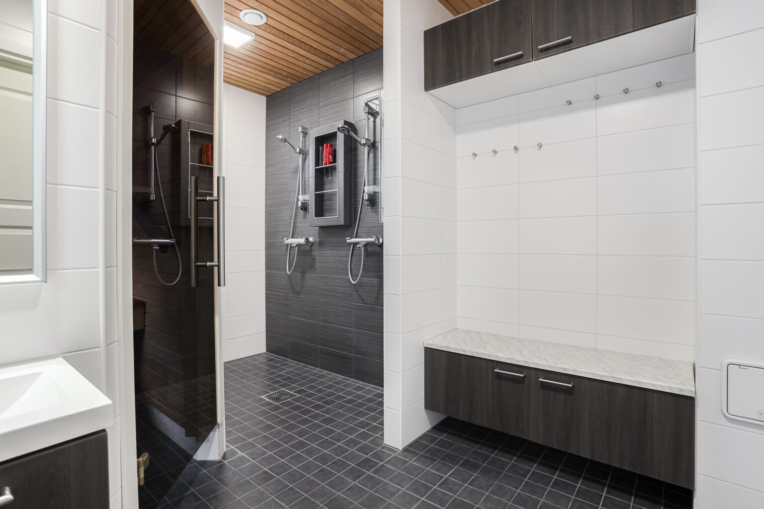 Alakerrasta löydät harrastetilat/oleskelutilat, jotka tarjoavat loistavat mahdollisuudet vapaa-ajan viettoon tai vaikkapa kotiharrastuksiin. Pinta-ala 46 m2.