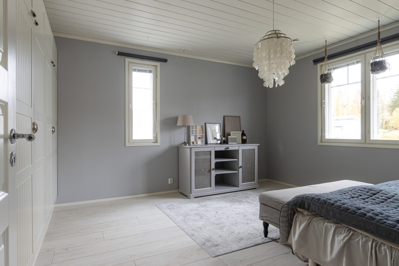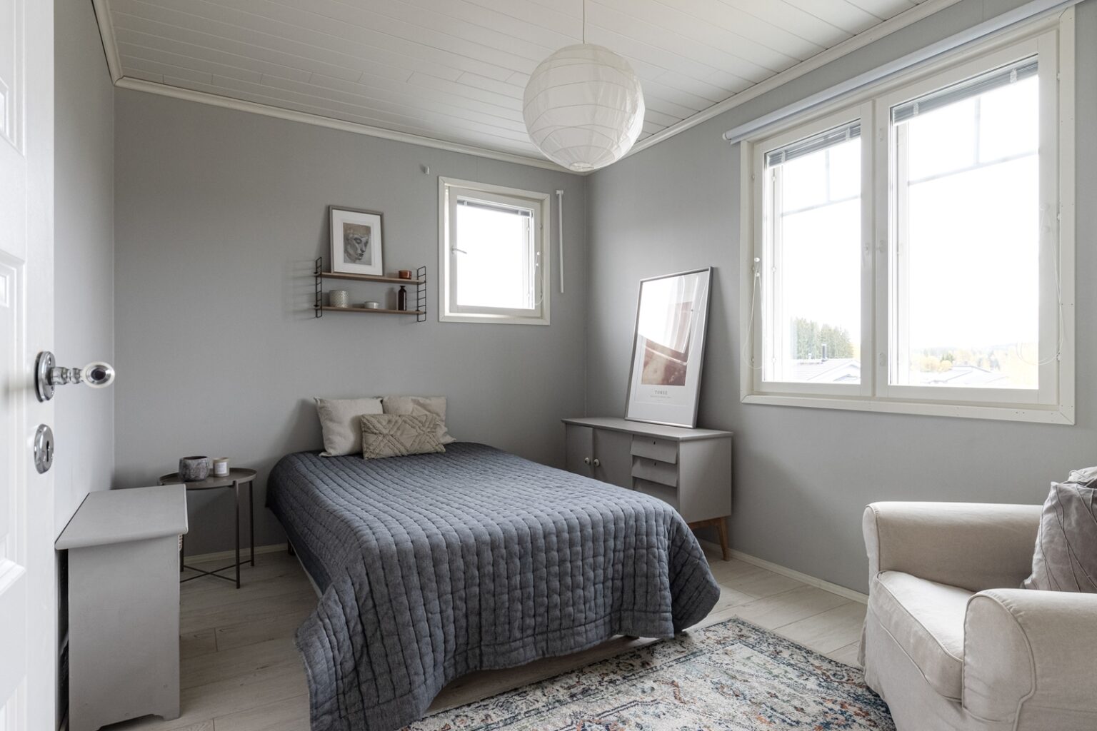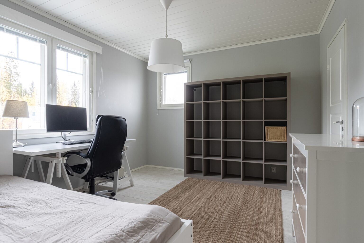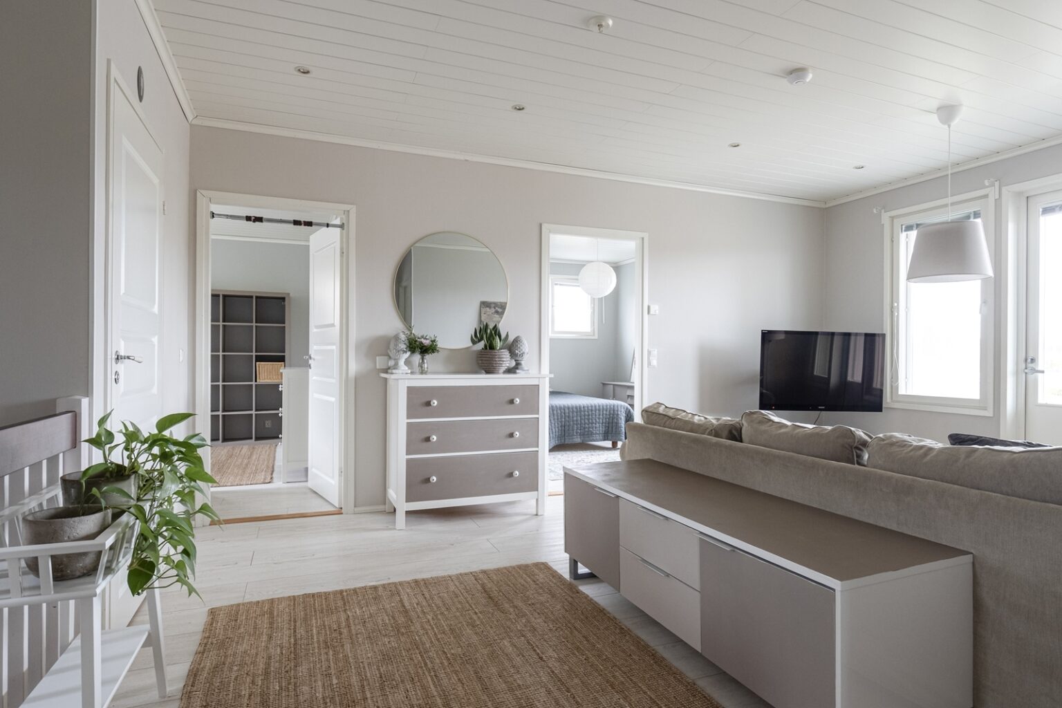 Omalla tontilla olevassa Kodissa on mainiosti tilaa vaikka isommallekin perheelle tai etätyöskentelyyn. Alakerrasta löytyy yhtenäinen olohuone ja ruokailutila, tilava keittiö kivitasoilla, WC, makuuhuone, kodinhoitohuone, kylpyhuone sekä sauna. Olohuoneesta on käynti katetulle etelään päin avautuvalle terassille. Yläkerrassa on neljä makuuhuonetta, kylpyhuone WC:llä ja arkiolohuone. Arkiolohuoneesta on käynti parvekkeelle.