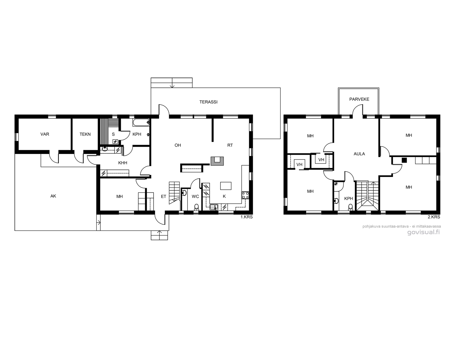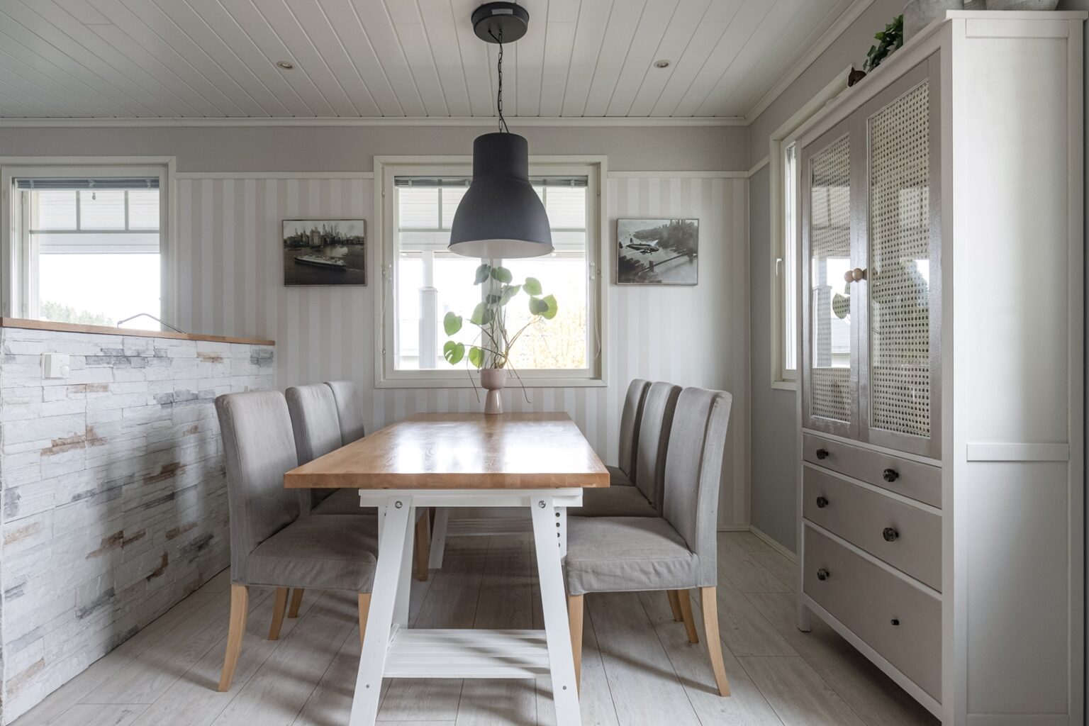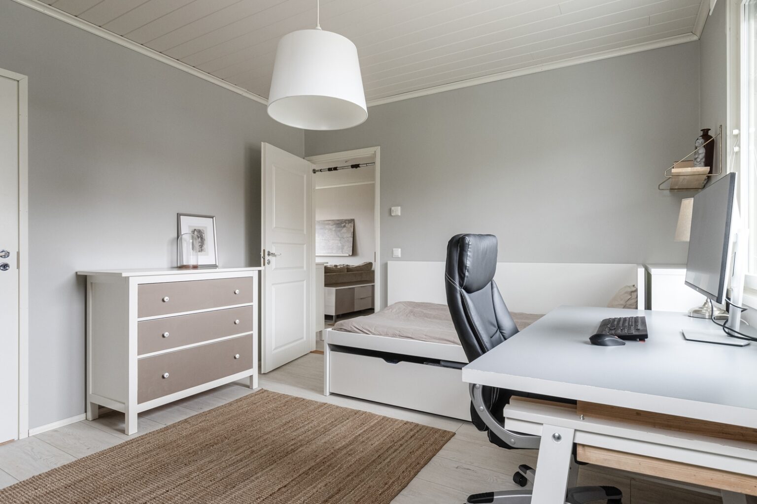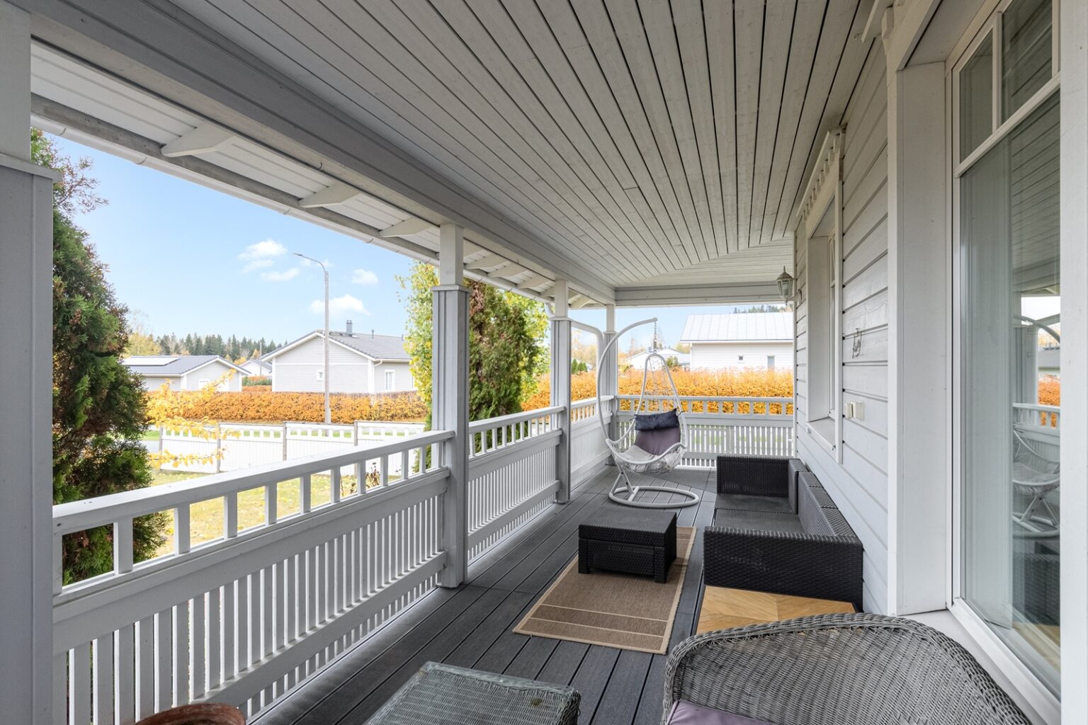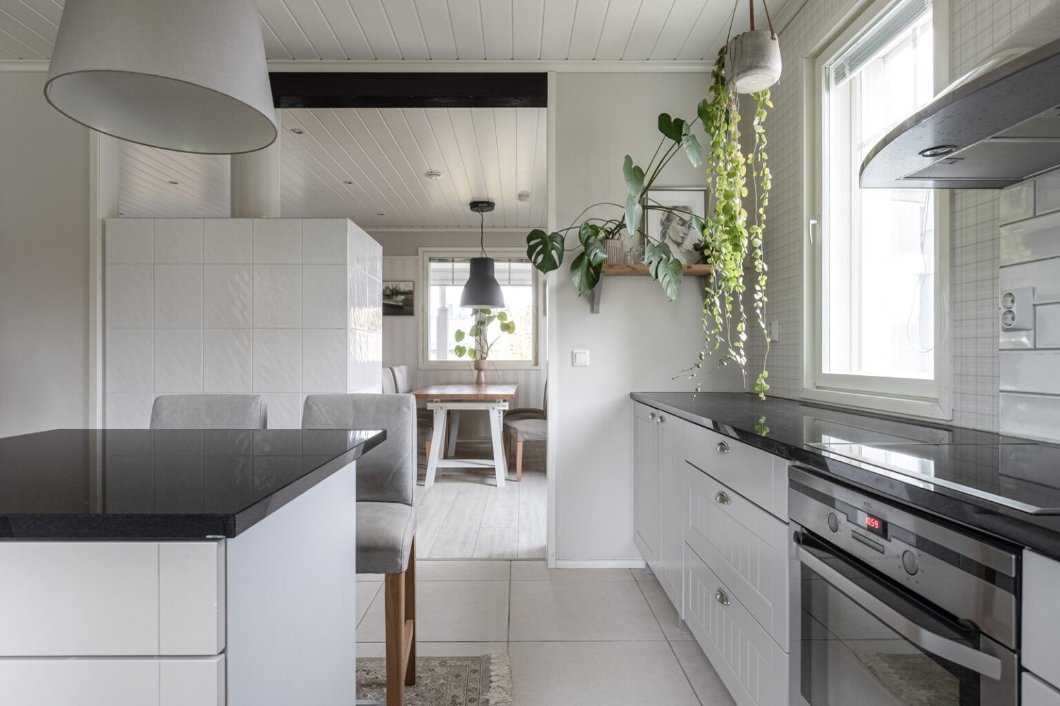 Omalla tontilla olevassa Kodissa on mainiosti tilaa vaikka isommallekin perheelle tai etätyöskentelyyn. Alakerrasta löytyy yhtenäinen olohuone ja ruokailutila, tilava keittiö kivitasoilla, WC, makuuhuone, kodinhoitohuone, kylpyhuone sekä sauna. Olohuoneesta on käynti katetulle etelään päin avautuvalle terassille. Yläkerrassa on neljä makuuhuonetta, kylpyhuone WC:llä ja arkiolohuone. Arkiolohuoneesta on käynti parvekkeelle.