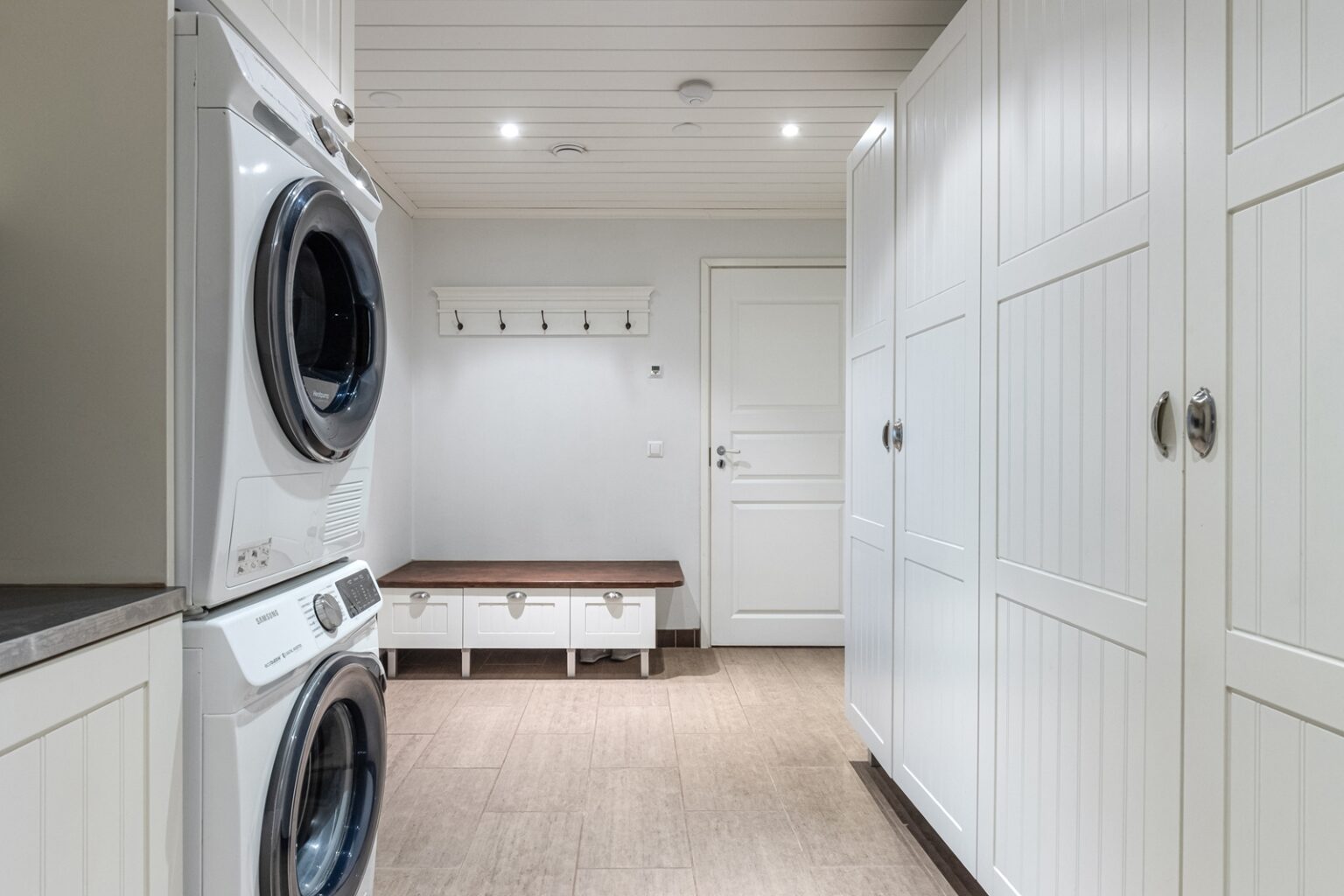 Alakerran kodinhoitohuoneesta pääsee suoraan kahden auton katokseen eli kauppakassit saa kivasti kastumatta suoraan sisälle. Autokatoksesta on käynti lämpimään varastoon ja tekniseen tilaan.