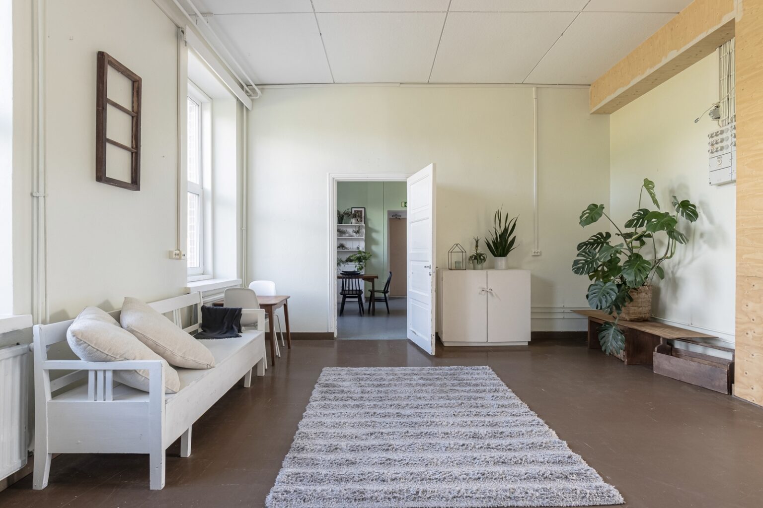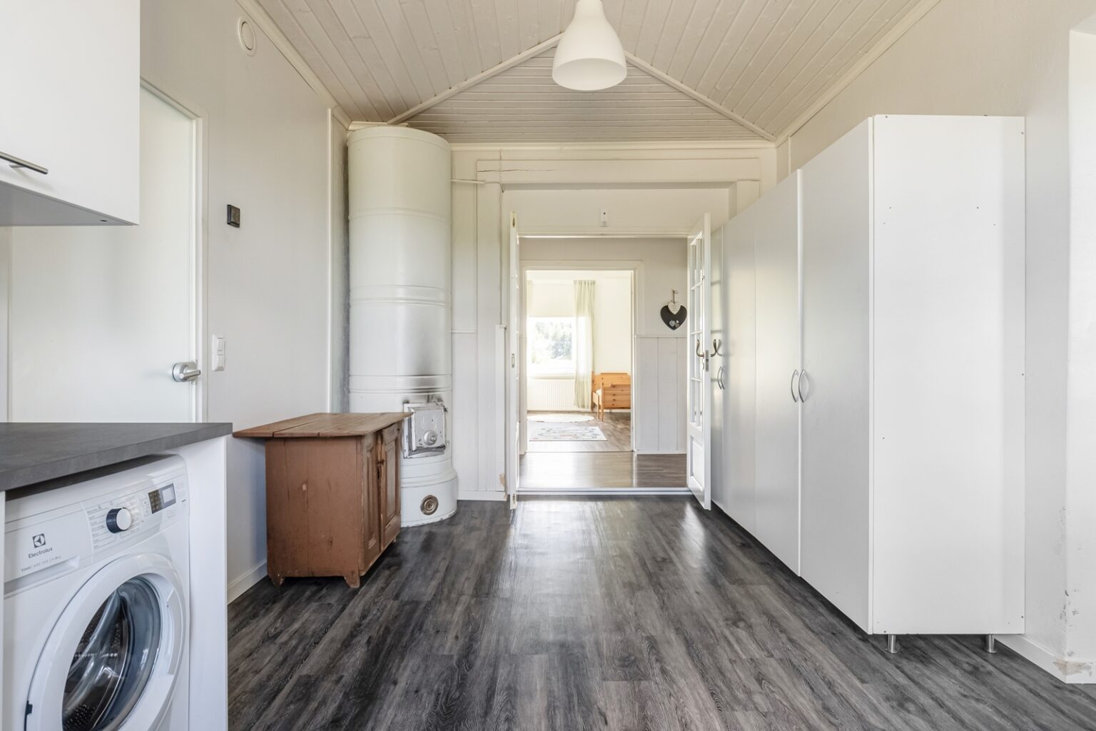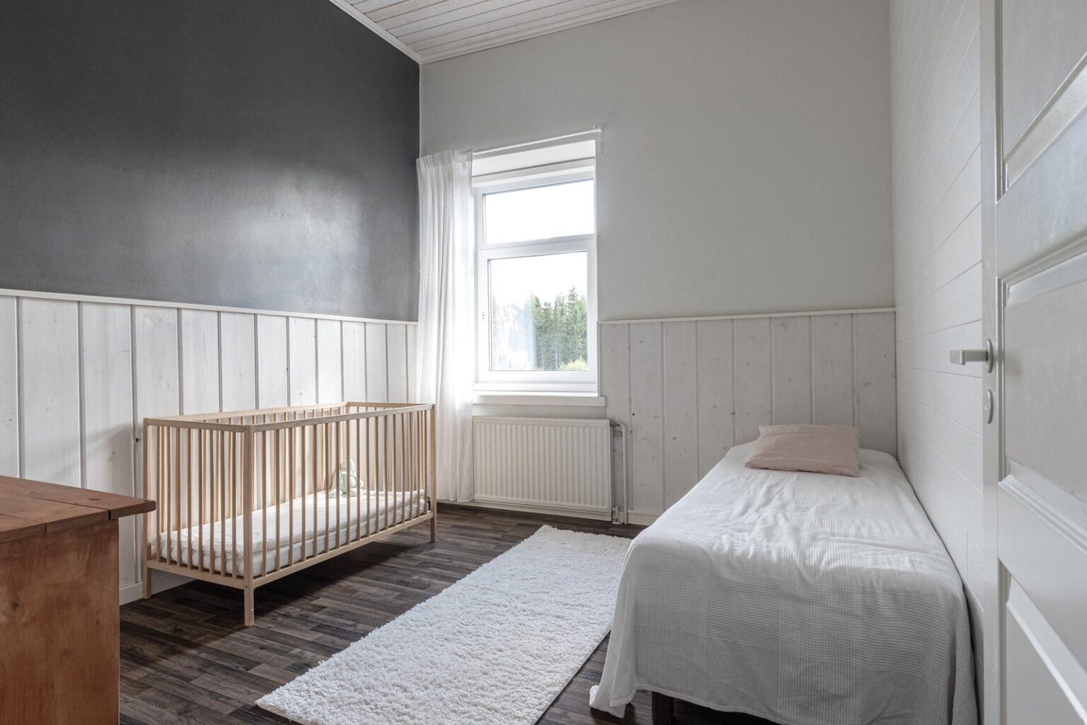 Yläkerta on nätisti remontoitu asuinkäyttöön 2012 – 2020. Sieltä löytyy tilava keittiö, ruokailuhuone, makuuhuoneita, olohuone, kylpyhuone, kodinhoitotila ja sauna.
