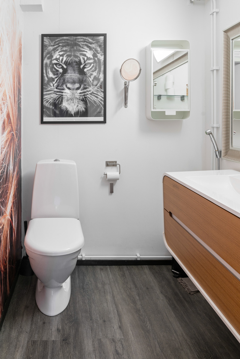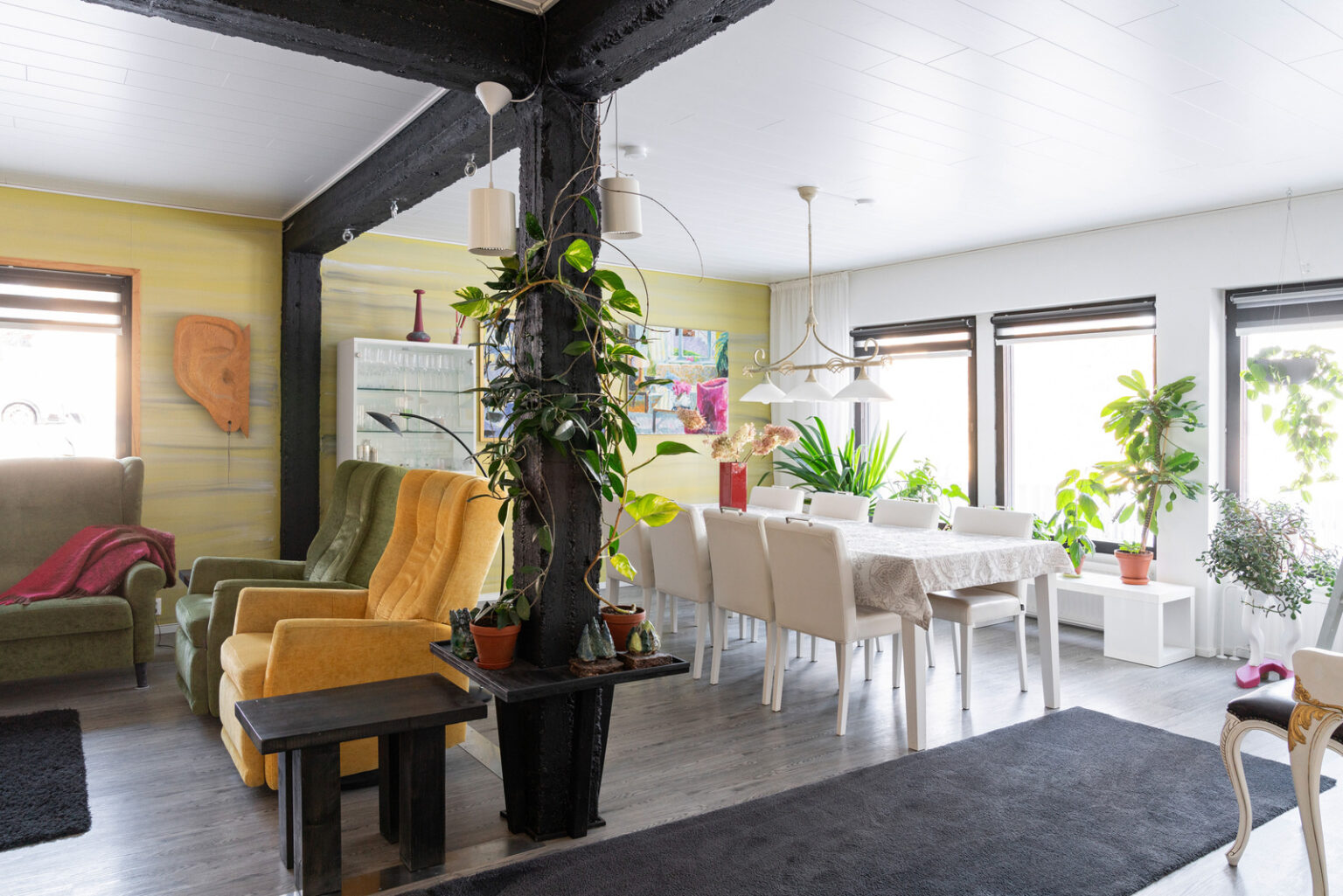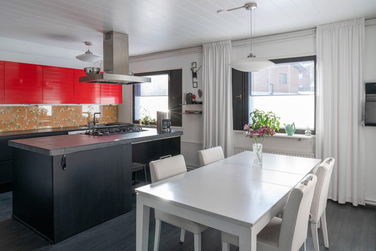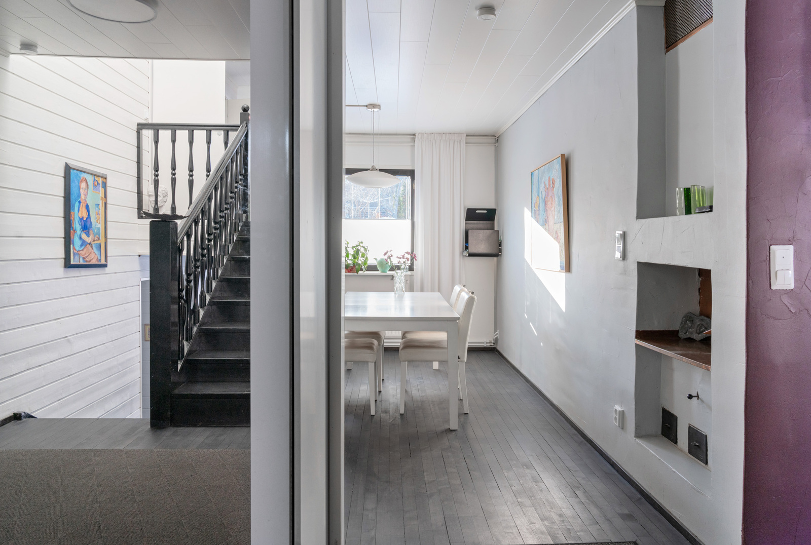 Tämä 1980-luvulla rakennettu talo hurmaa omaperäisellä ilmeellään ja toimivalla pohjaratkaisullaan. Kodin sydän on vuonna 2012 remontoitu keittiö, joka on samalla saanut raikkaan, tyylikkään ilmeen. Samassa yhteydessä on uusittu myös pesutilat ja päivitetty kodin pintoja. Käyttövesiputket ja kaukolämmönvaihdin on uusittu myöhemmin, joten tärkeimmät remontit on jo tehty.