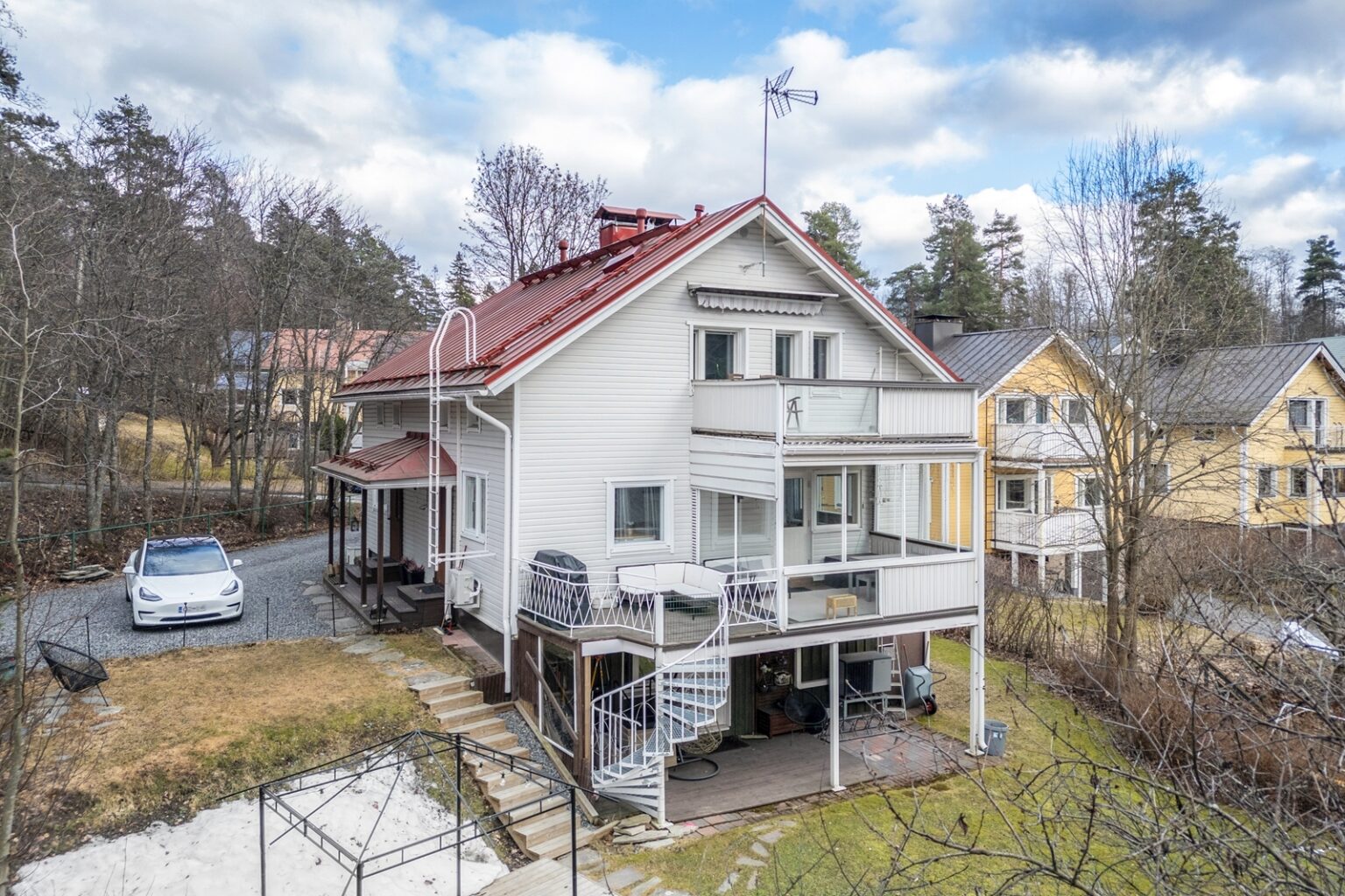 | Tehdyt korjaukset | Katto 2011. Etuseinän korjaus 2011. Sisätilat: KHH/apukeittiö 2010. Vesi-ilmalämpöpumppu uusittu 2017. Alakerran ilmalämpöpumppu noin 2017. Sauna 2018. Keittiö ja koneet 2020. WC:t keskikerros 2020. Talo on maalattu ja vesirännit uusittu 2021. Lisälämmöneristys yläpohjaan 2022. Yläkerran remontti 2025, ikkunat uusittu ja koko yläkerta tehty uusiksi. Lopputarkastus 2025. Keskikerroksen valurautaviemärit on sukitettu. Käyttövesiputket on uusittu. ks. listaus |