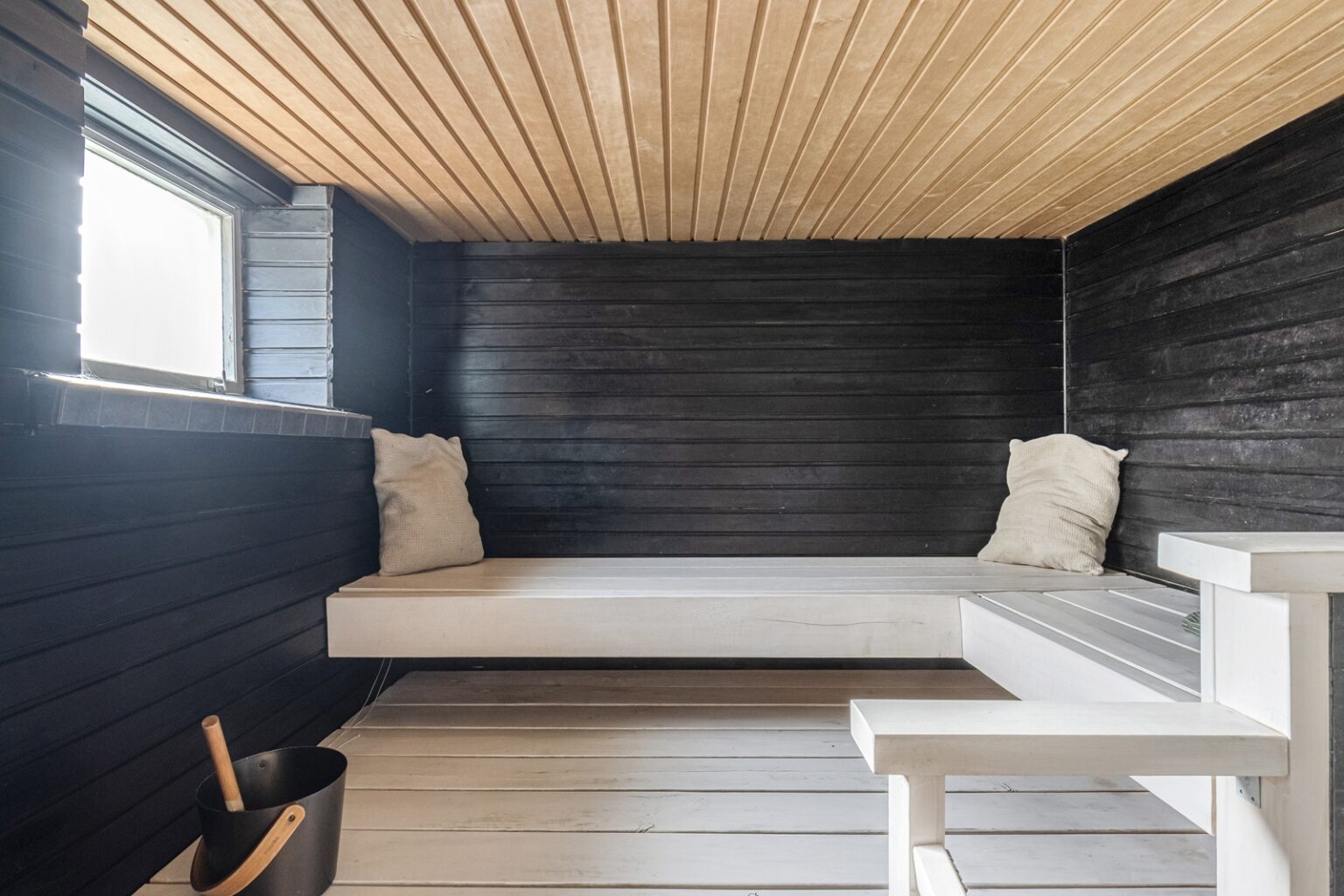 – Olohuoneessa on tunnelmallinen takka ja saunassa puukiuas