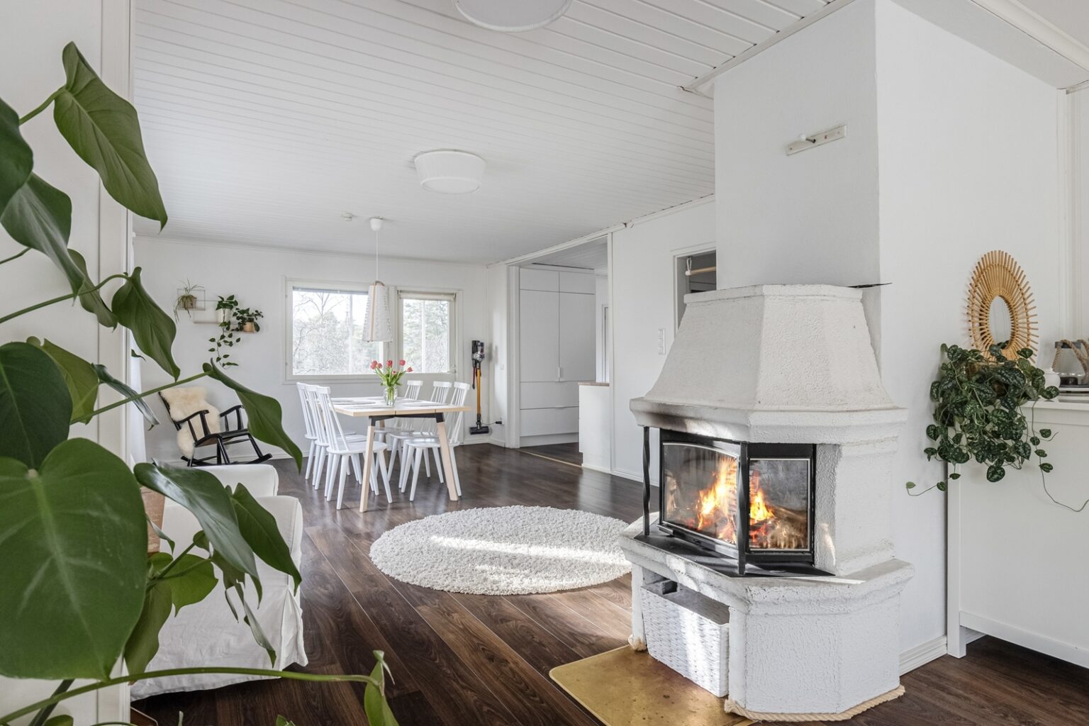 | Lämmitysjärjestelmä ja sen kunto | Vesi-ilmalämpöpumppu, lattialämmitykset, osin myös sähkö. Lisäksi vesikiertopatterit. Takka. |